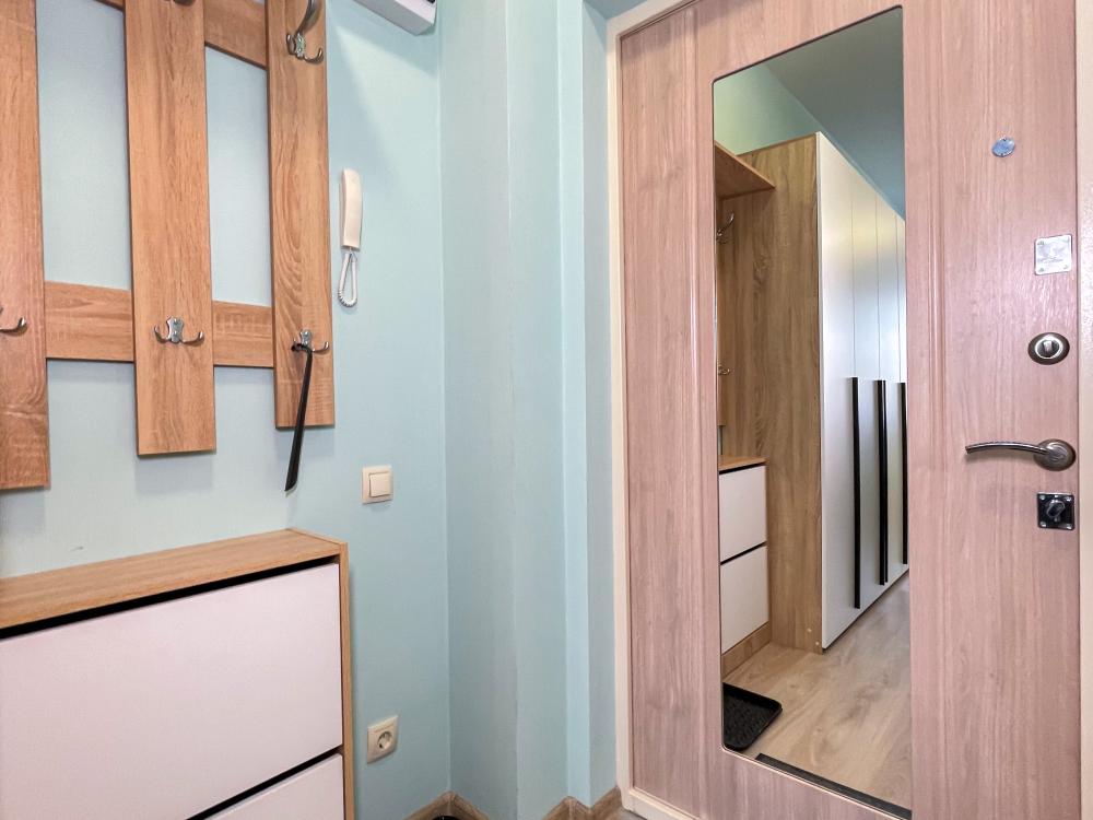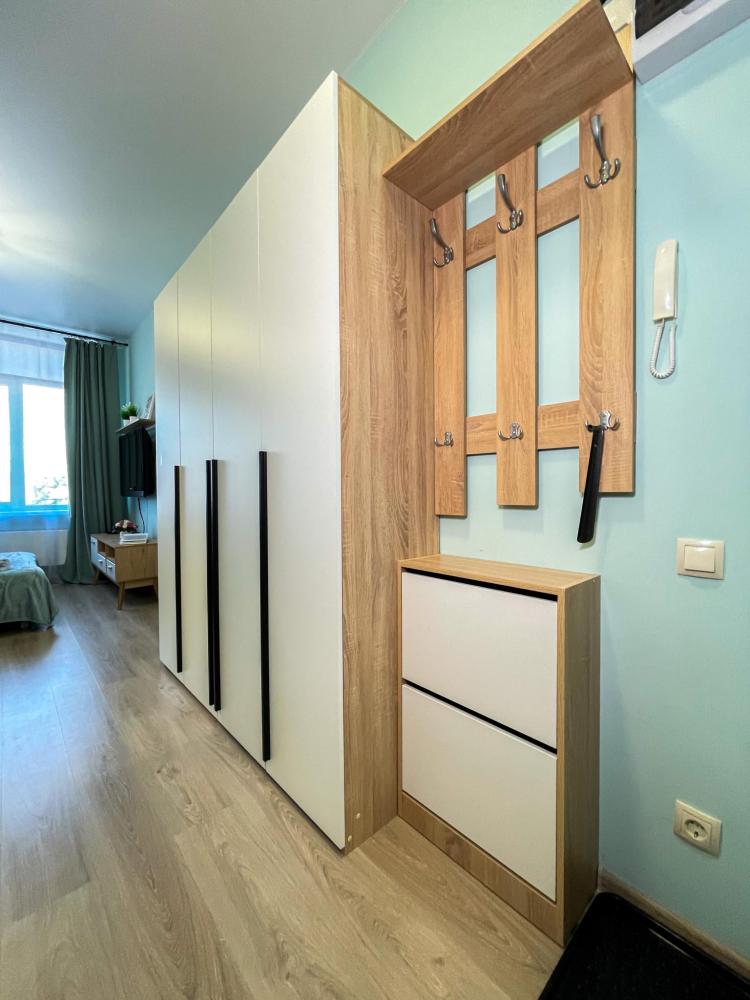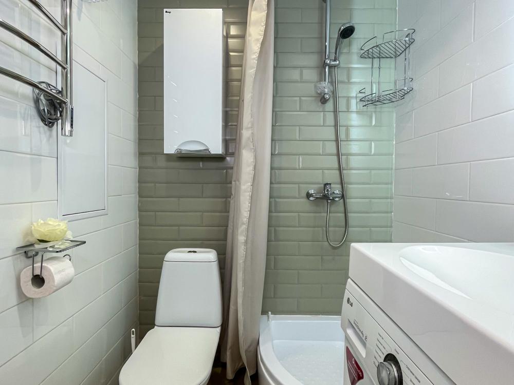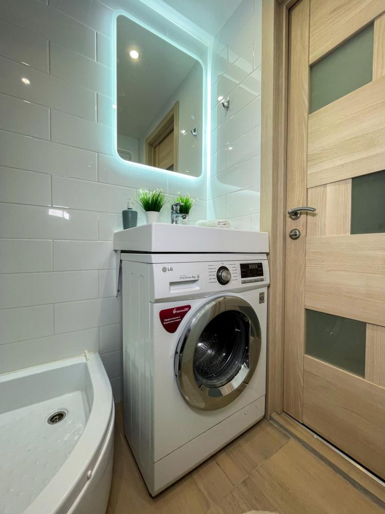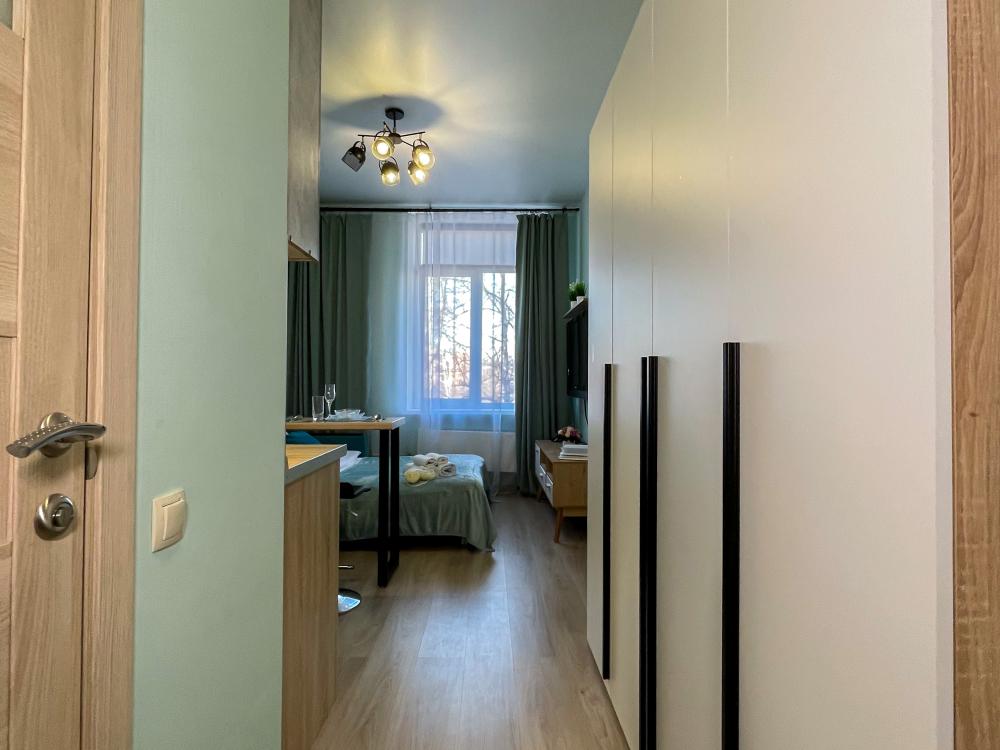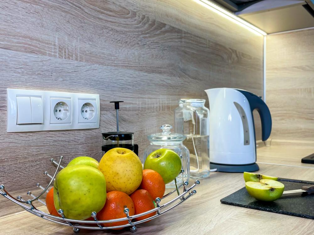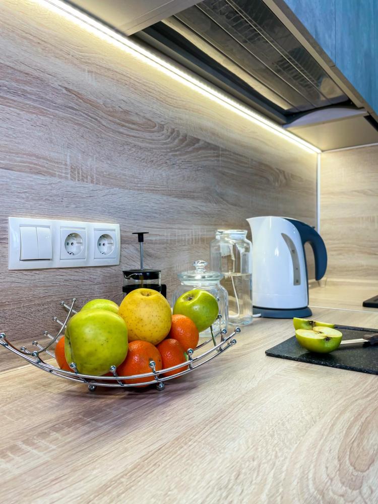 Апартаменты-студия подойдут для проживания 2-х человек. Спальные места: двуспальная кровать с ортопедическим матрасом. Для комфортного проживания доступны: стиральная машина, фен, телевизор (подключено приложение KION), высокоскоростной Wi-Fi, утюг, кондиционер. В кухонной зоне: холодильник, СВЧ-печь, чайник, электрическая плита, духовой шкаф, посуда и столовые приборы. Постельное белье, полотенца, гигиенические принадлежности: гель для душа, шампунь, мыло и одноразовые тапочки предоставляются.