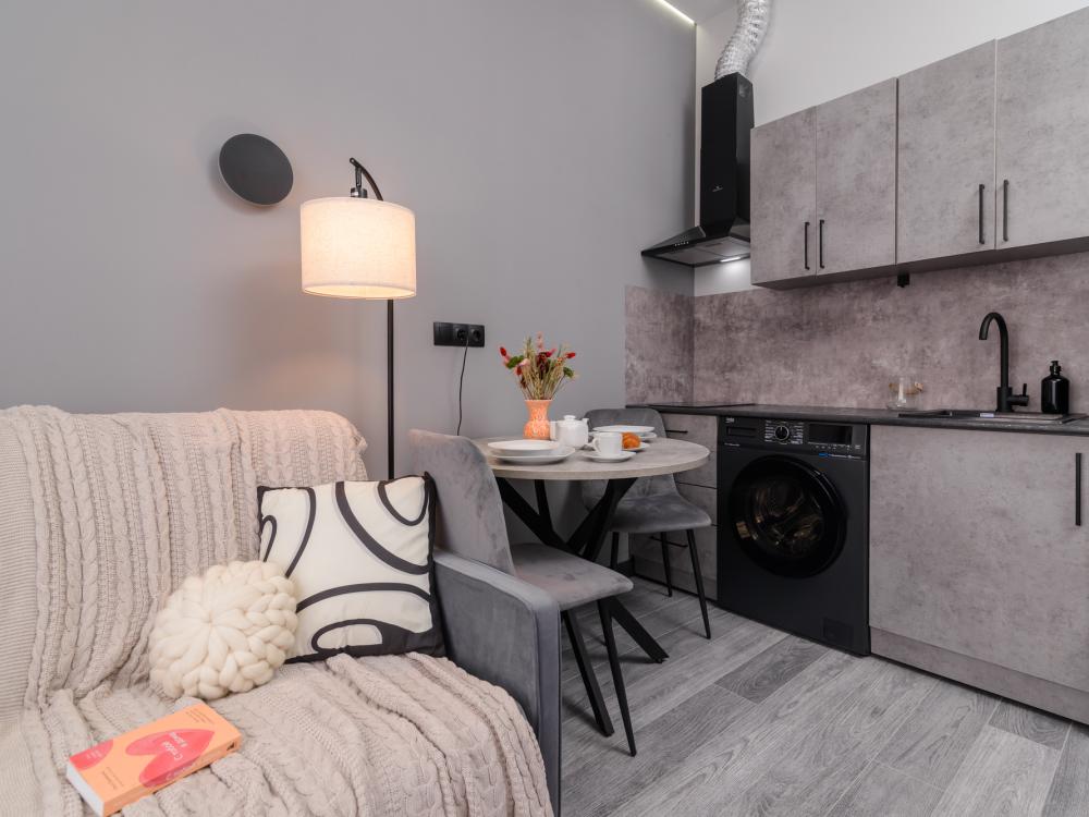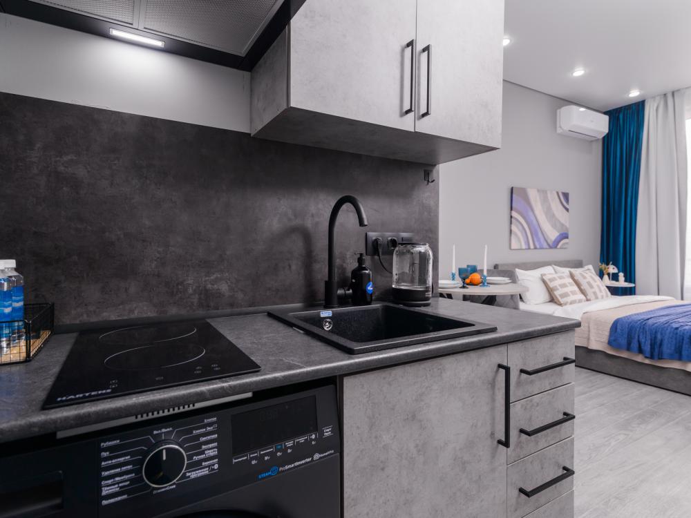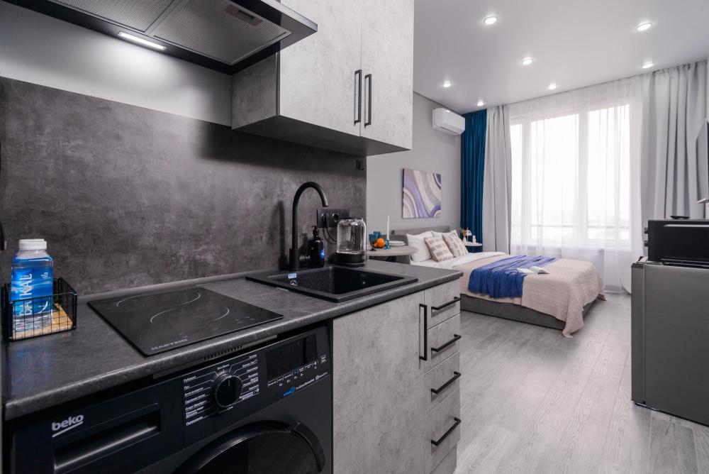 Квартира оборудована всем необходимым: - Вместимость до 2 гостей (раскладной диван) - Полотенце, тапочки, зубной набор, шампунь, гель для душа - Санузел совмещённый, душ, стиральная машина, фен, утюг - Полноценная кухня (электроплита, холодильник, микроволновка, чайник) - Высокоскоростной Wi-Fi и ТВ, кондиционер