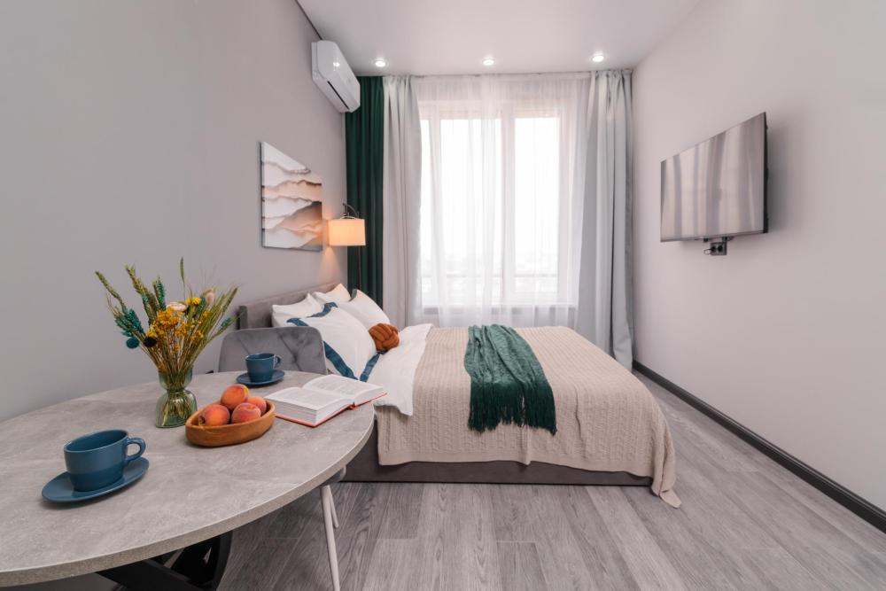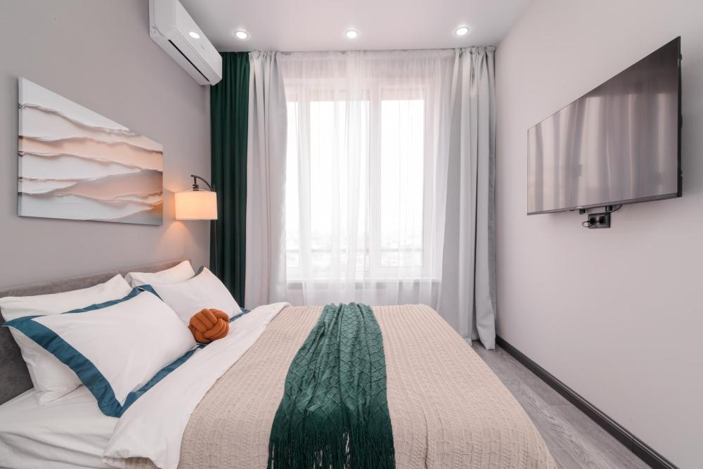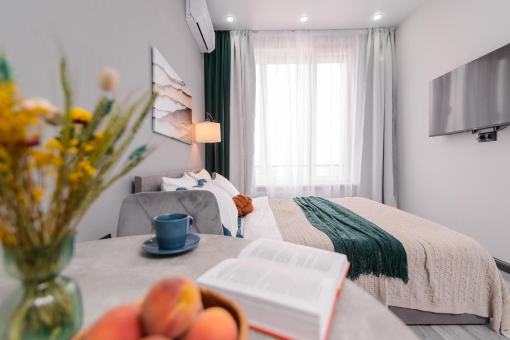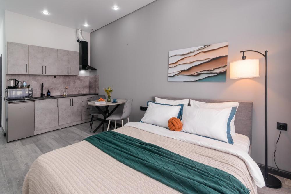 Квартира оборудована всем необходимым: - Вместимость до 2 гостей (двуспальная кровать) - Полотенце, тапочки, зубной набор, шампунь, гель для душа - Санузел совмещённый, душ, стиральная машина, фен, утюг - Полноценная кухня (электроплита, холодильник, микроволновка, чайник) - Высокоскоростной Wi-Fi и ТВ, кондиционер