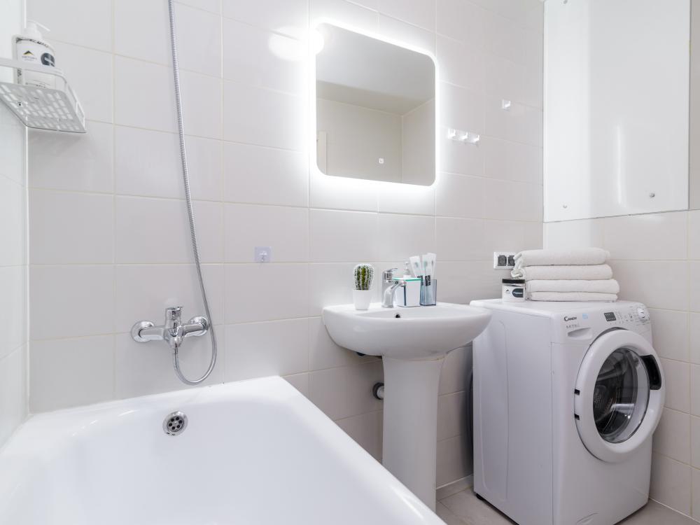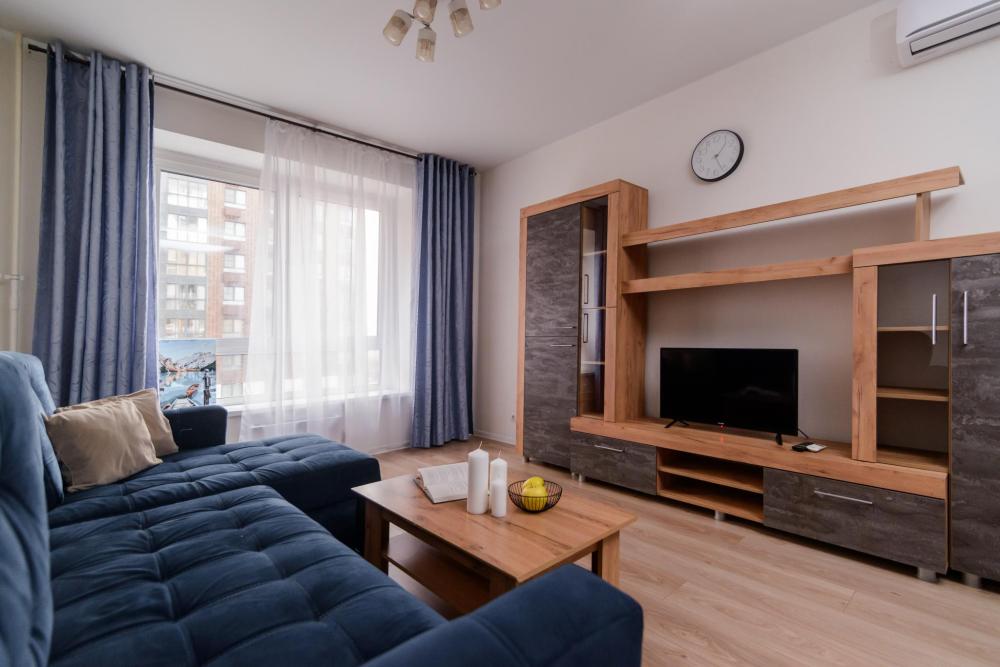 Уютная двухкомнатная квартира. Квартира вмещает в себя до 4 человек, предусмотрена двуспальная кровать и раскладной диван. В одной из спален стоит двуспальная кровать с ортопедическим матрасом и шкаф с зеркалом в пол. Во второй спальне раскладной диван, телевизор, тумбочка. На кухне есть кухонный стол, холодильник, плита, чайник. Также для гостей предоставляется бесплатный WiFi, гладильная доска, утюг, фен и сушилка для белья. Для каждого гостя свежее полотенце, гель для душа, шампунь.