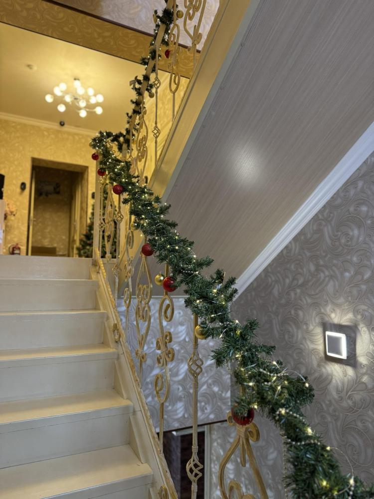 Комната категории "Люкс" располагается на втором этаже с отдельным входом по винтовой лестнице. В комнате: двуспальная кровать, комод, телевизор, постельное белье, халаты, набор полотенец, тапочки, косметические принадлежности, стол со стульями, шкаф, раскладной диван, кондиционер, мини кухня , набор посуды,холодильник.