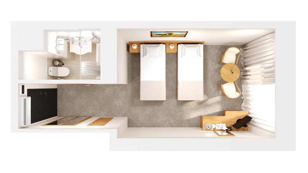 Классический номер с кабельным телевидением и бесплатным Wi-Fi. Услуги и удобства: две раздельные кровати, телевизор с плоским экраном, телефон, сейф, кондиционер, рабочий стол, шкаф/гардероб, ванна или душ, фен, халат, бесплатные туалетные принадлежности, комплект полотенец. Номер полностью подходит для гостей с ограниченными физическими возможностями.