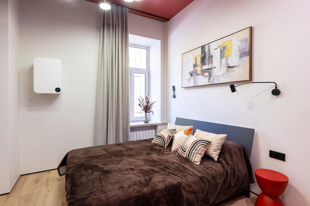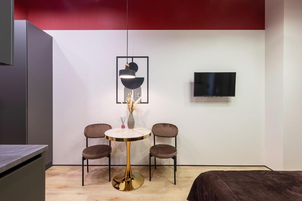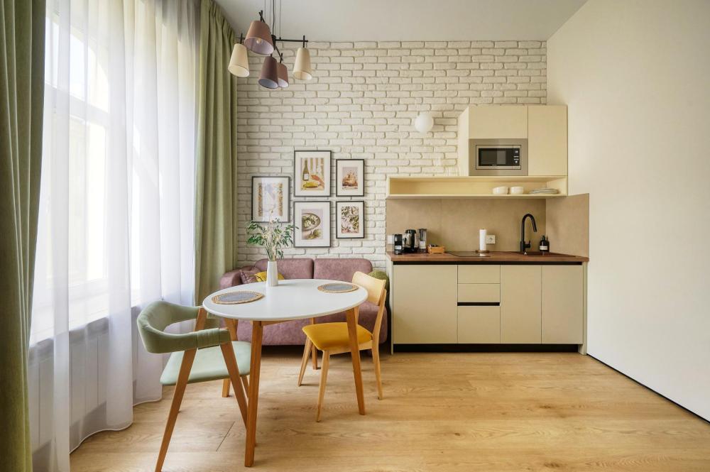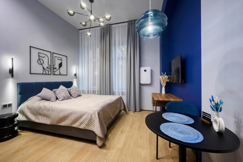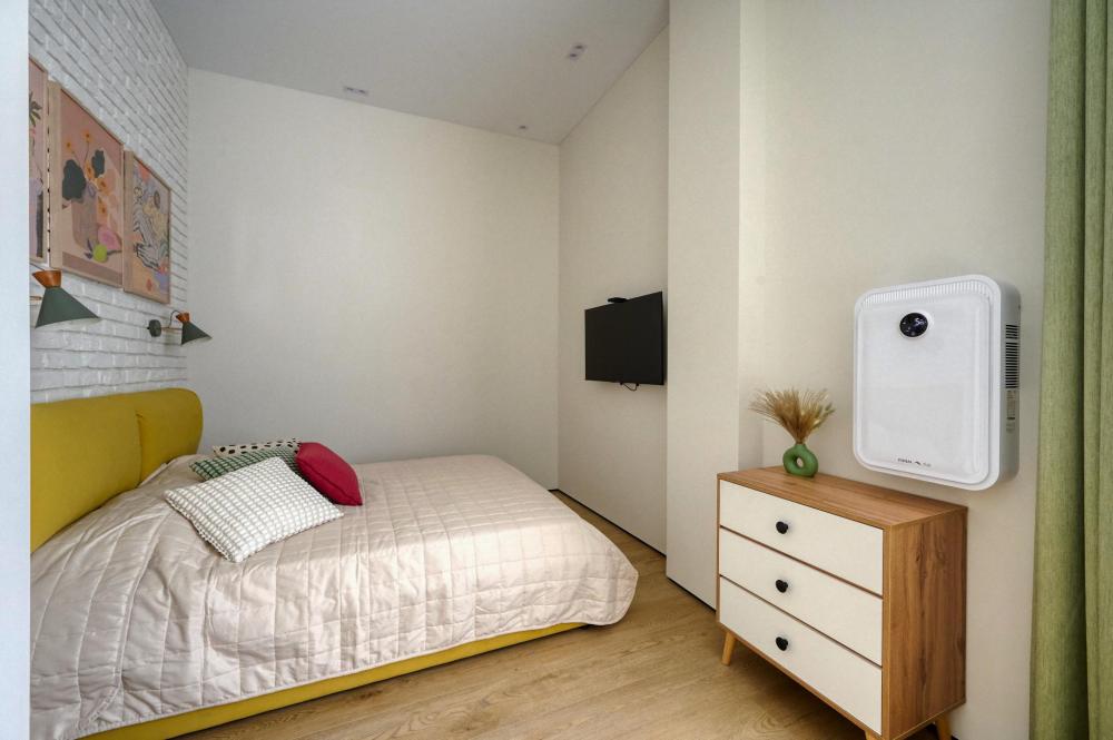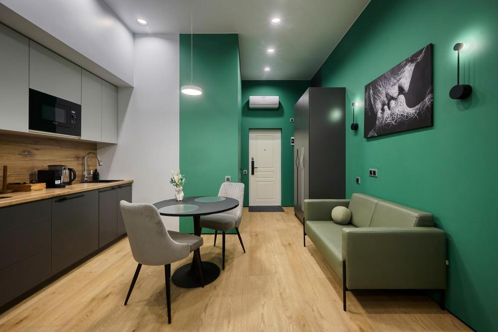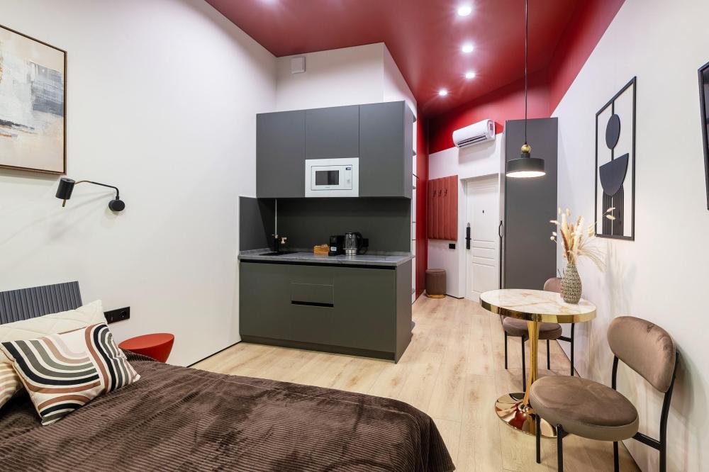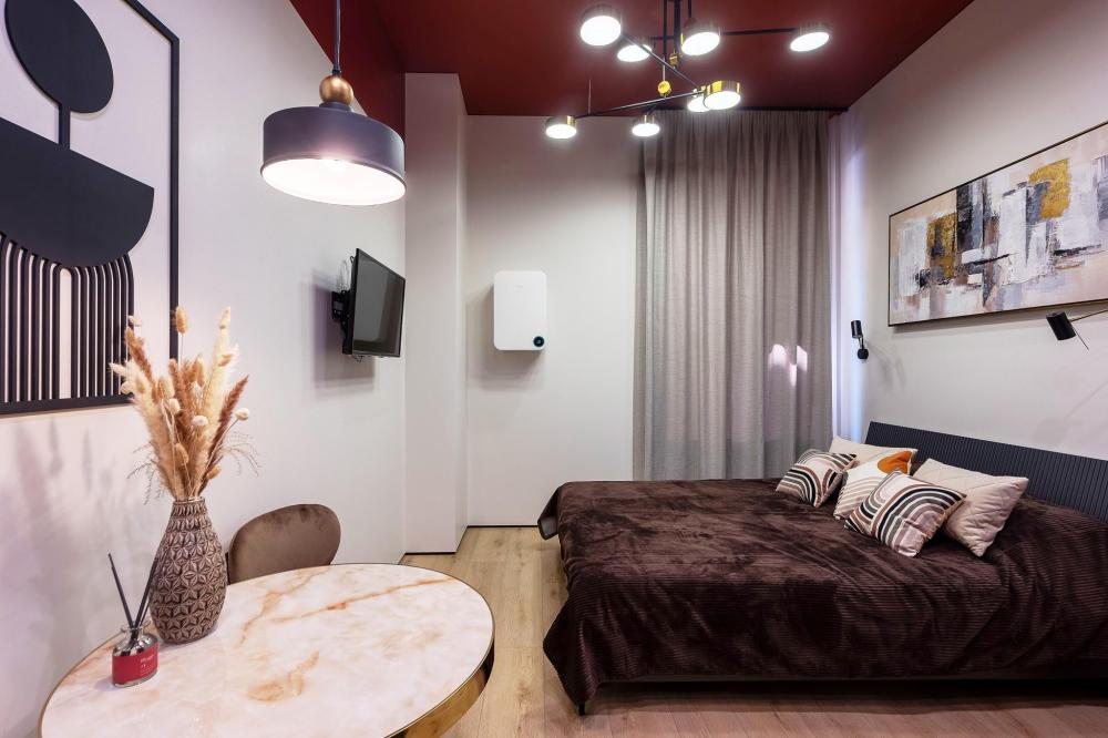 Уютные апартаменты студия. В студии есть все необходимое для комфортного проживания: современная мебель: двуспальная кровать, письменный стол, обеденная зона, кухня и шкаф, вся необходимая бытовая техника и удобства: фен, утюг, гладильная доска, микроволновка, чайник, кофемашина, плита для готовки, мини-холодильник, телевизор, кондиционер и очиститель воздуха, скоростной WI-FI, кухня оборудована полным комплектом посуды и столовых приборов для приема пищи, чай, кофе, свежее постельное белье, полотенца, гель для душа, шампунь, кондиционер, мыло.