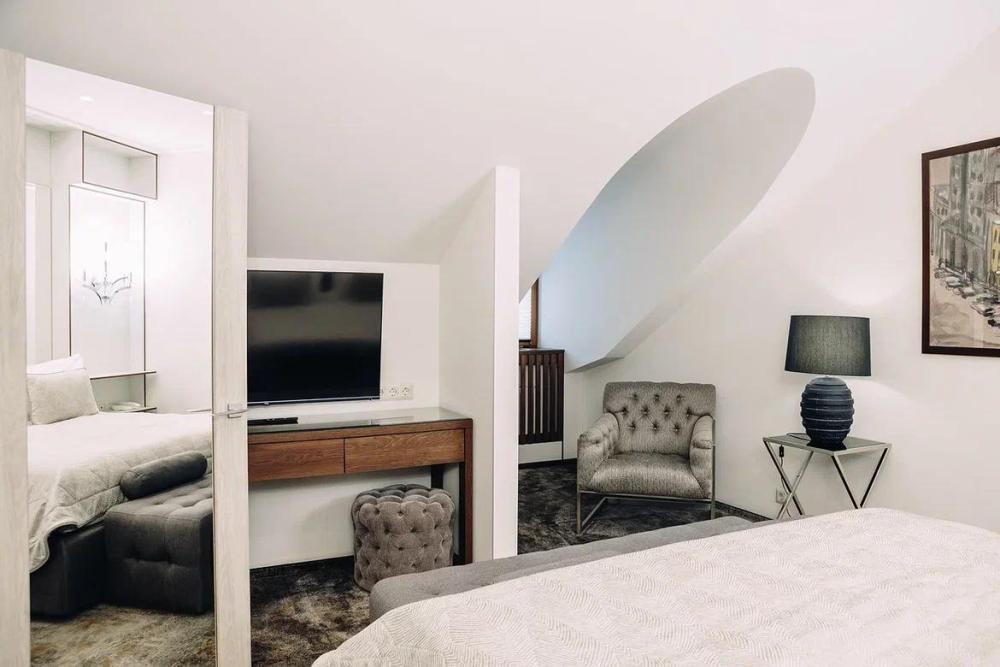 Люкс - это просторный дизайнерский двухкомнатный номер (40-60 кв.м.), состоит из гостиной и спальни. Каждый номер отличается индивидуальным дизайном. В номере одна двуспальная кровать (180*200), телевизор, мини холодильник, тапочки, халат, чайная и кофейная станции, косметика. Некоторые номера имеют балкон. При бронировании этого номера, пожалуйста, обращайте на это внимание. Этот номер идеально подходит для длительного проживания. Здесь есть все, что необходимо для вашего комфорта и домашнего уюта.