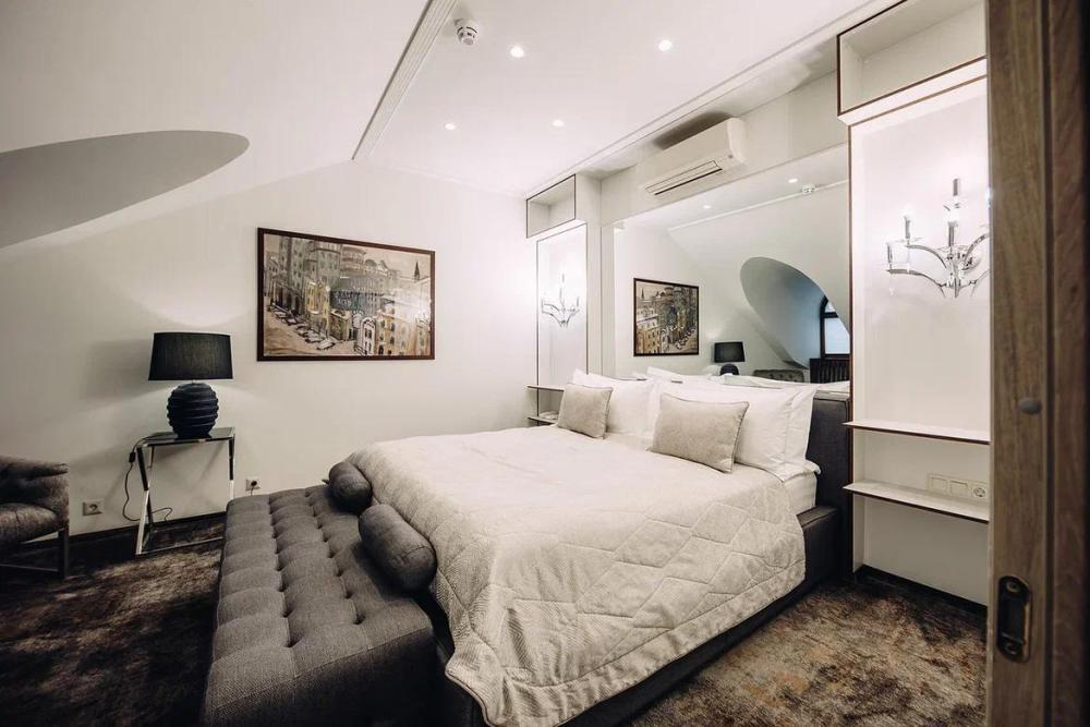Люкс - это просторный двухкомнатный номер (40-60 кв.м.), состоит из гостиной и спальни. Каждый номер отличается индивидуальным дизайном. В номере одна двуспальная кровать (180*200), телевизор, минибар, тапочки, халат, чайная и кофейная станции, косметика. Некоторые номера имеют балкон. При бронировании этого номера, пожалуйста, обращайте на это внимание. Этот номер идеально подходит для длительного проживания. Здесь есть все, что необходимо для вашего комфорта и домашнего уюта.