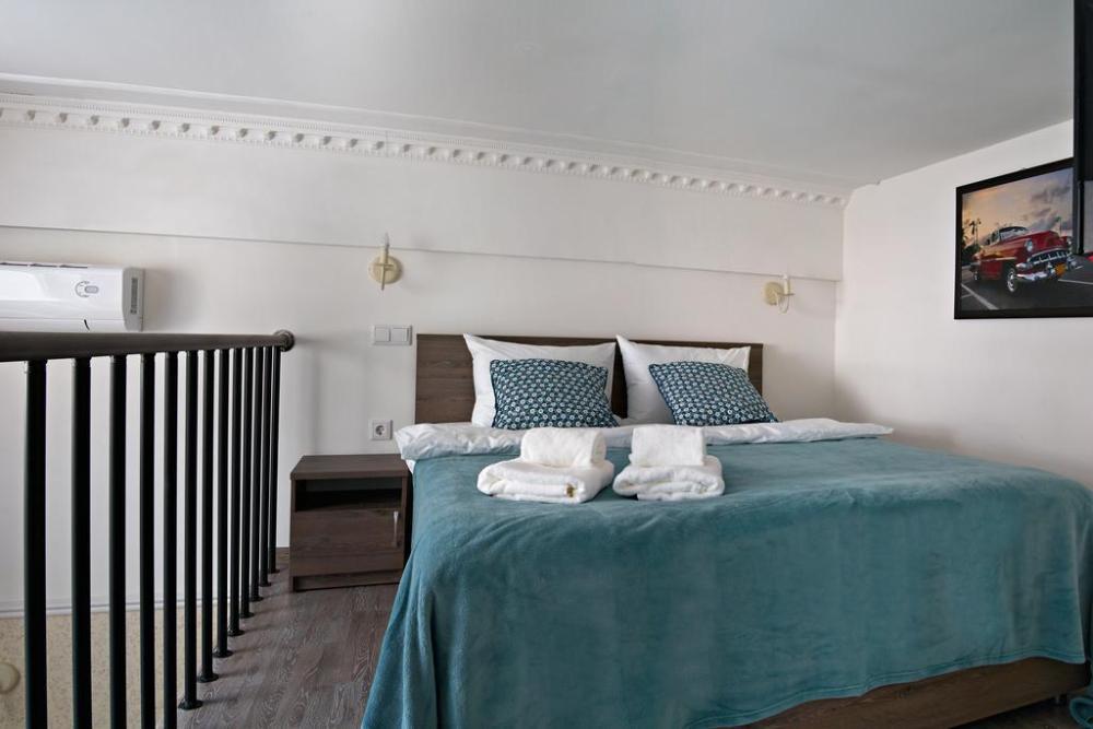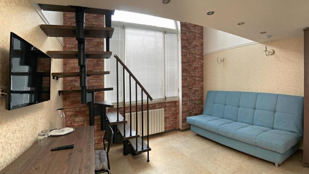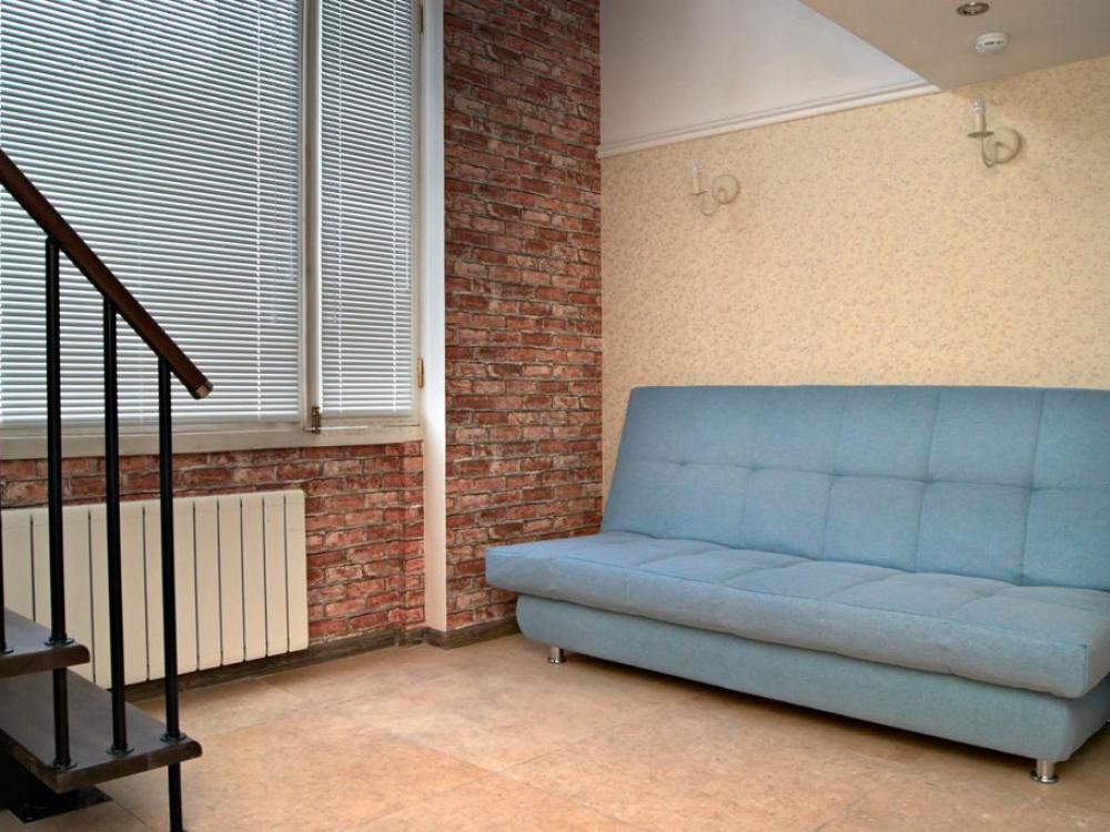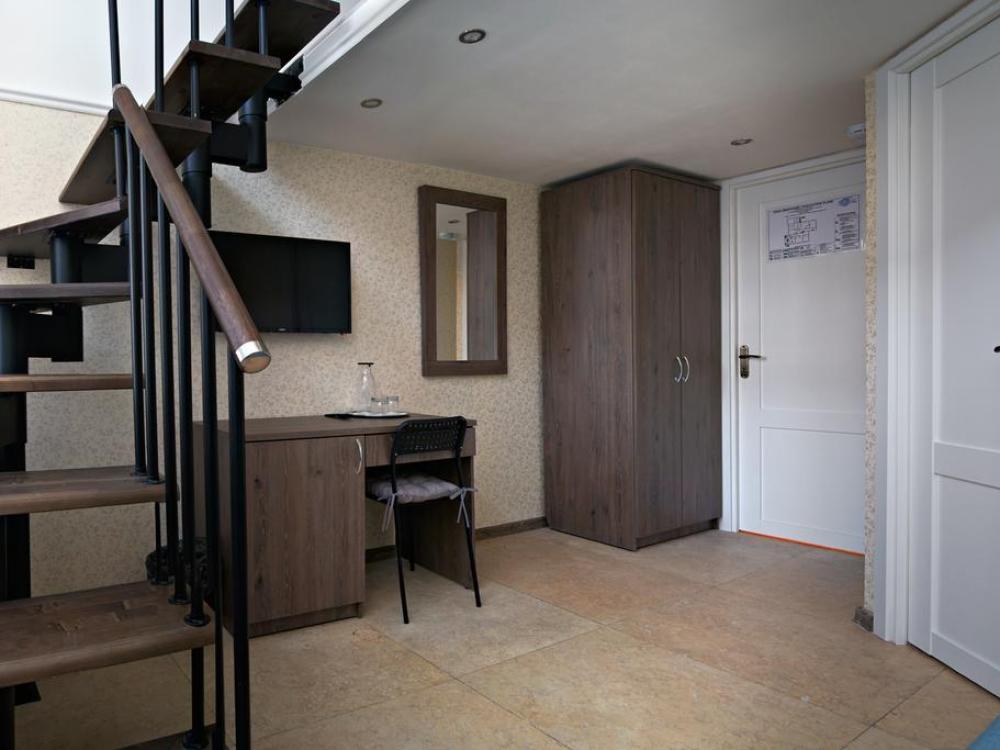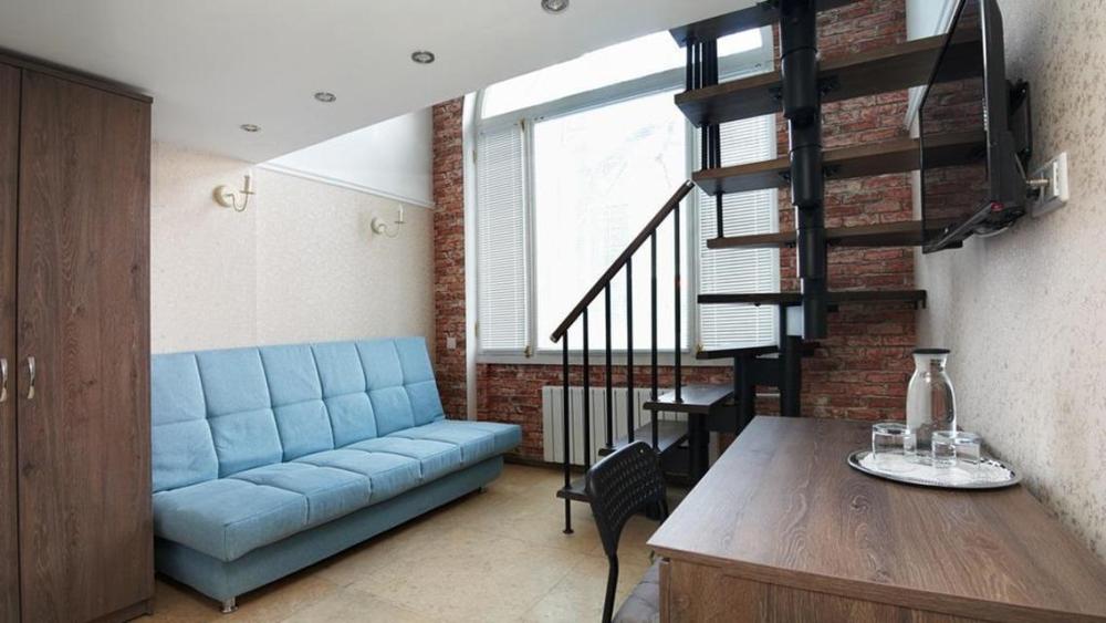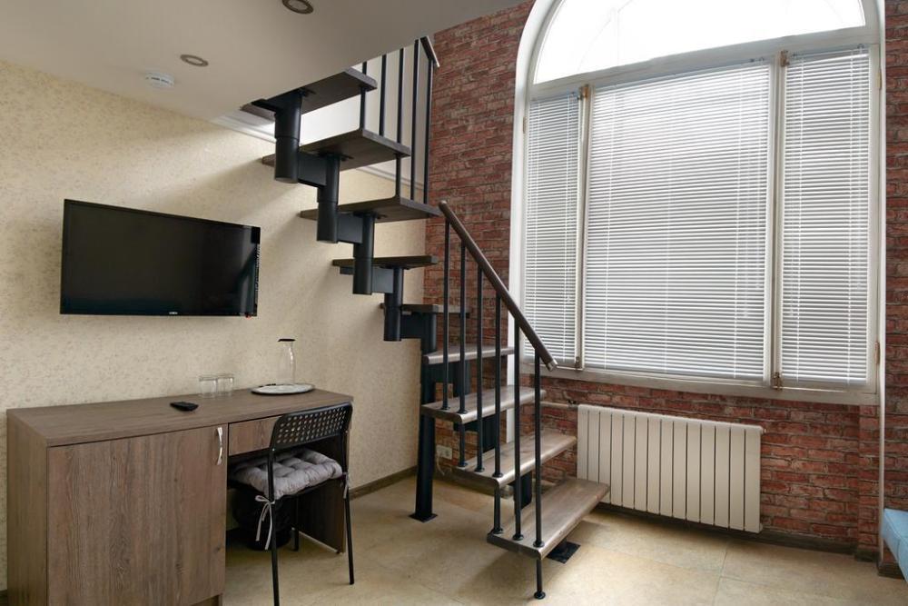 Двухуровневый номер люкс площадью 32 кв.м. В номере: диван, двухспальная кровать, мини-бар, телевизор, кондиционер, рабочий стол, гладильные принадлежности, шкаф или гардероб, ванная комната, халаты.