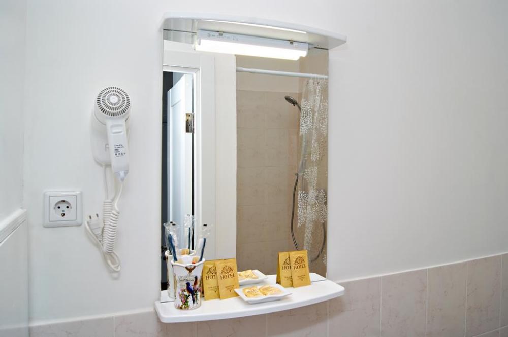 Номер эконом (без окна) площадью 15 кв.м. для размещения до 2-х гостей. В номере две односпальные кровати, душ, туалет, телевизор, стол, стул, мини-холодильник, ванная комната.