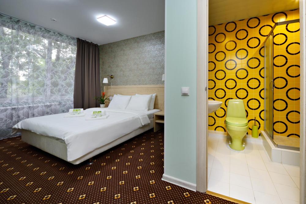 Двухместный номер с двуспальной кроватью и общей ванной комнатой. Без окна.