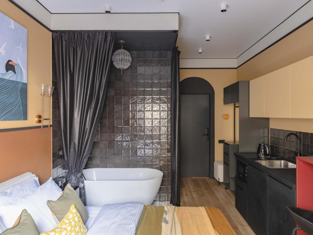 Новый уютный отель на Арбате в тихом переулке с дизайнерской отделкой и стильной мебелью •Номера оснащены технологией умного дома с виртуальным голосовым помощником «Алиса» •«Алиса» управляет светом, шторами, воспроизведением музыки и другими удобствами по голосовой команде •Принимаем иностранных гостей, обеспечивая удобное и комфортное проживание в историческом центре Москвы •Комфортная кровать размера king-size и шторы-блэкаут для полноценного отдыха •Smart TV, бесплатный wi-fi •Стиральная машинка, кулер и сушилка в местах общего доступа •Круглосуточное бесконтактное заселение 24/7 для вашего удобства •Кухонная зона со всеми удобствами и кондиционер •Возможно получение отчетных документов •При заселении требуется депозит 3000 рублей •При бронировании двух номеров предоставляется скидка в размере 20% (обратитесь к менеджеру отеля). •Проживание в нашем отеле принесёт вам скидку в кафе «Хлеб Насущный» для хорошего начала дня. Будем рады видеть вас в нашем новом инновационном отеле! (при заселении необходимо созвониться с администратором за 3-4 часа до заселения, для получения информации по кодам доступа)