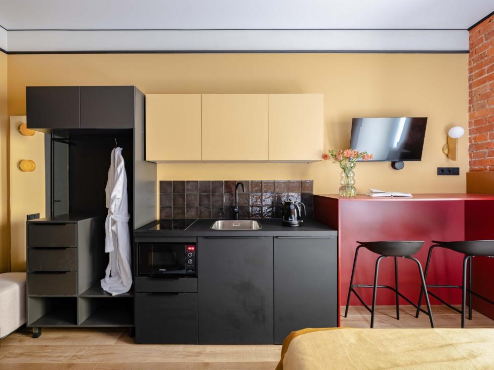 Новый уютный отель на Арбате в тихом переулке с дизайнерской отделкой и стильной мебелью •Номера оснащены технологией умного дома с виртуальным голосовым помощником «Алиса» •«Алиса» управляет светом, шторами, воспроизведением музыки и другими удобствами по голосовой команде •Принимаем иностранных гостей, обеспечивая удобное и комфортное проживание в историческом центре Москвы •Комфортная кровать размера king-size и шторы-блэкаут для полноценного отдыха •Smart TV, бесплатный wi-fi •Кухонная зона со всеми удобствами и кондиционер •Стиральная машинка, кулер и сушилка в местах общего доступа •Круглосуточное бесконтактное заселение 24/7 для вашего удобства •Возможно получение отчетных документов •При заселении требуется депозит 3000 рублей •Проживание в нашем отеле принесёт вам скидку в кафе «Хлеб Насущный» для хорошего начала дня. •Парковка автомобиля 1000 р. в сутки Будем рады видеть вас в нашем новом инновационном отеле! (при заселении необходимо созвониться с администратором за 3-4 часа до заселения для получения инструкции по заселению. номер телефона администратора +7 926 1654569)