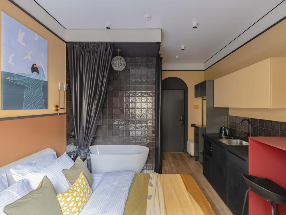 Новый уютный отель на Арбате в тихом переулке с дизайнерской отделкой и стильной мебелью •Номера оснащены технологией умного дома с виртуальным голосовым помощником «Алиса» •«Алиса» управляет светом, шторами, воспроизведением музыки и другими удобствами по голосовой команде •Принимаем иностранных гостей, обеспечивая удобное и комфортное проживание в историческом центре Москвы •Комфортная кровать размера king-size и шторы-блэкаут для полноценного отдыха •Smart TV, бесплатный wi-fi •Стиральная машинка, кулер и сушилка в местах общего доступа •Круглосуточное бесконтактное заселение 24/7 для вашего удобства •Кухонная зона со всеми удобствами и кондиционер •Возможно получение отчетных документов •При заселении требуется депозит 3000 рублей •Проживание в нашем отеле принесёт вам скидку в кафе «Хлеб Насущный» для хорошего начала дня. •Парковка автомобиля 1000 р. в сутки Будем рады видеть вас в нашем новом инновационном отеле! (при заселении необходимо созвониться с администратором за 3-4 часа до заселения для получения инструкции по заселению. номер телефона администратора +7 926 1654569)