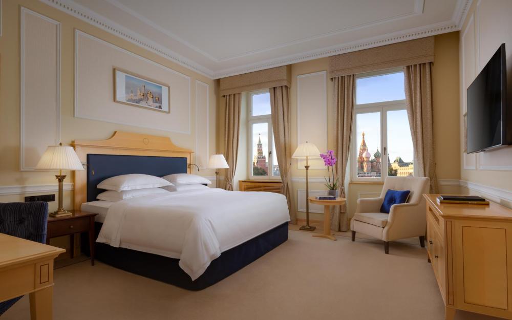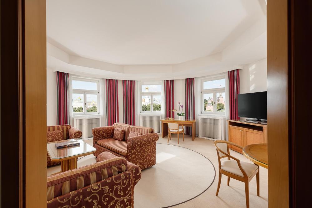 Просторные двухкомнатные «Представительские» люксы предлагают гостям уединенную спальню и комфортабельную гостиную. Из окон люкса открывается вид на Кремль и Красную площадь, центр города или во внутренний двор отеля.