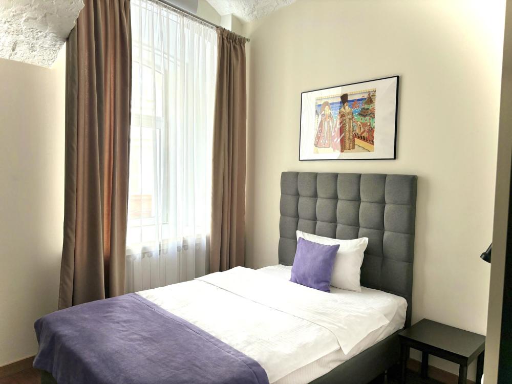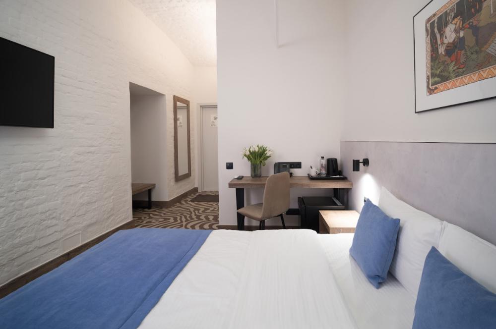 Новый современный номер с видом на внутренний небольшой двор включает: Wi-Fi, двуспальную кровать, сейф, прикроватный столик, ТВ с плоским экраном, стол, электрический чайник и чайный набор, телефон для связи с ресепшен, небольшой холодильник, шкаф с вешалками, зеркало. Ванная комната: душевая кабина, туалет, раковина, фен, зеркало. Каждому Гостю комплементарно предоставляются тапочки и косметические средства. Халаты возможно получить по запросу. Также Гости могут воспользоваться парковкой отеля, забронировав её заранее по телефону +7(495)215-01-99.