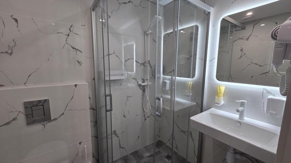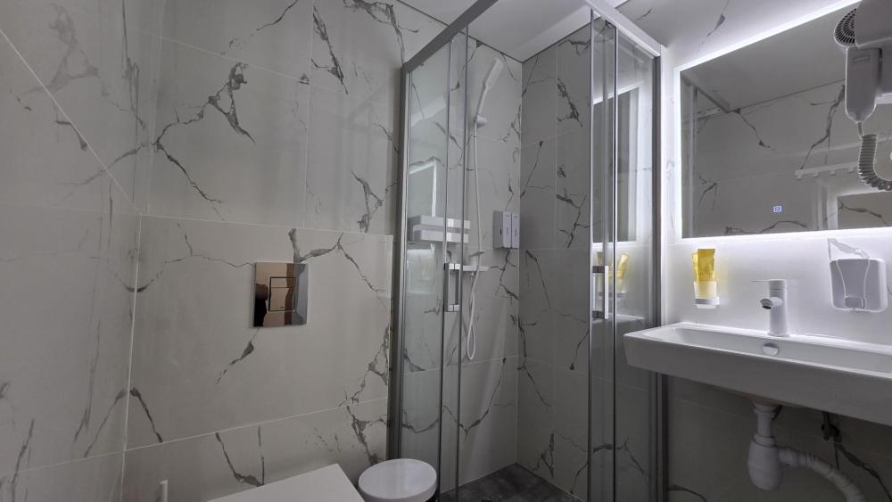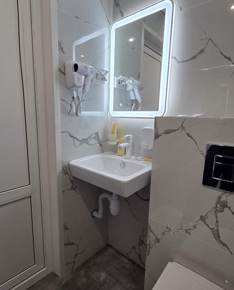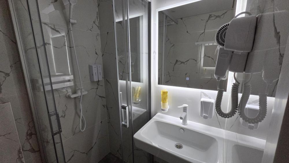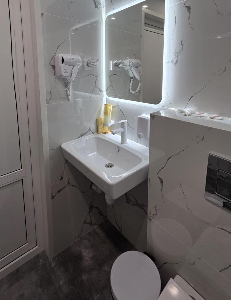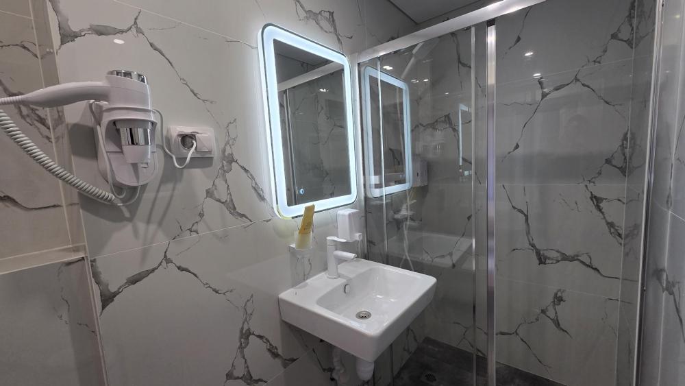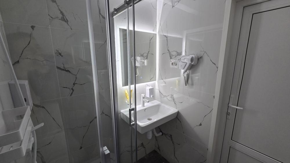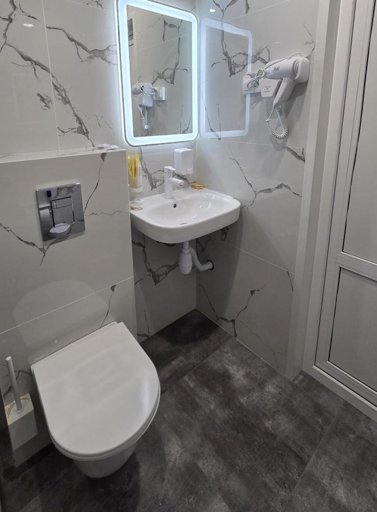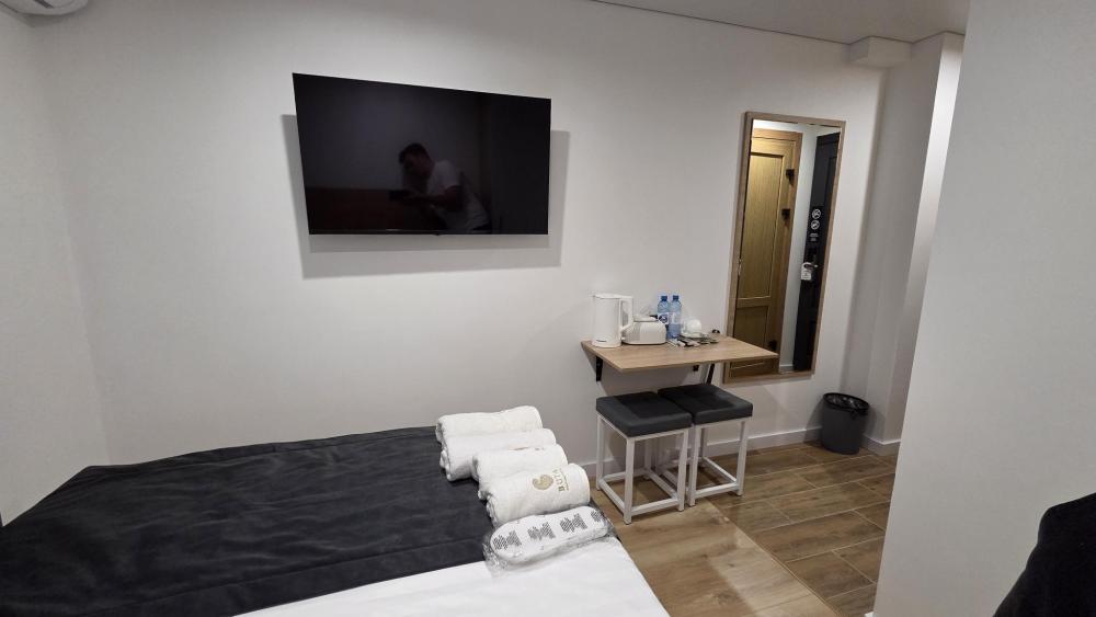 Номер стандарт площадью 8 кв.м. для размещения до 2-х гостей. Номер оснащен: кровать 160 на 200, комфортный анатомический матрас, стол, стулья, душ, туалет, обувница, шкаф, стол, стулья, зеркало в прихожей, зеркало с подсветкой в ванной, Смарт тв, холодильник, утюг, гладильная доска, чайник, кружки, гель для тела, шампунь, мыло, гигиенические наборы, зубные наборы, сплит система.