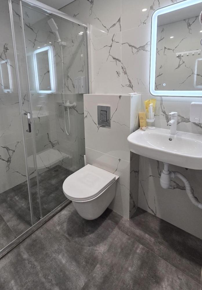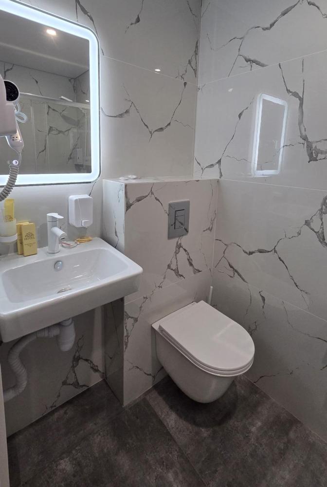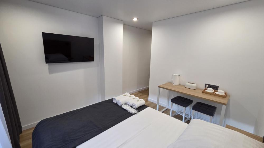 Номер стандарт площадью 14 кв.м. для размещения до 2-х гостей. Номер оснащен: кровать 160 на 200, комфортный анатомический матрас, стол, стулья, душ, туалет, обувница, шкаф, стол, стулья, зеркало в прихожей, зеркало с подсветкой в ванной, Смарт тв, холодильник, утюг, гладильная доска, чайник, кружки, гель для тела, шампунь, мыло, гигиенические наборы, зубные наборы, сплит система.