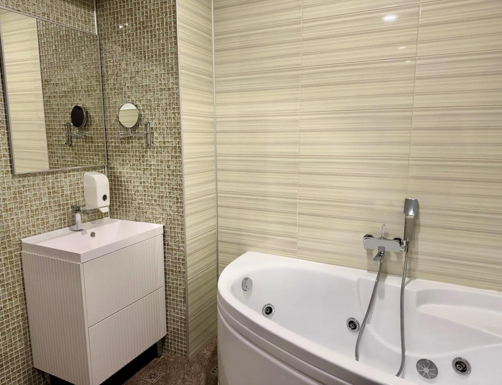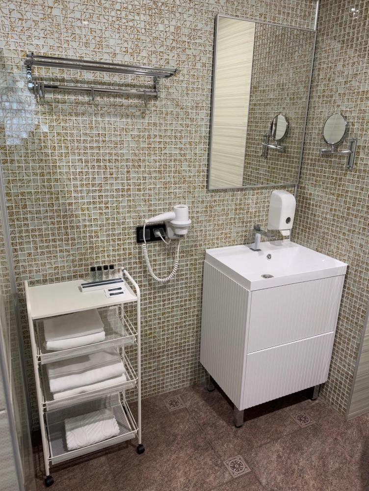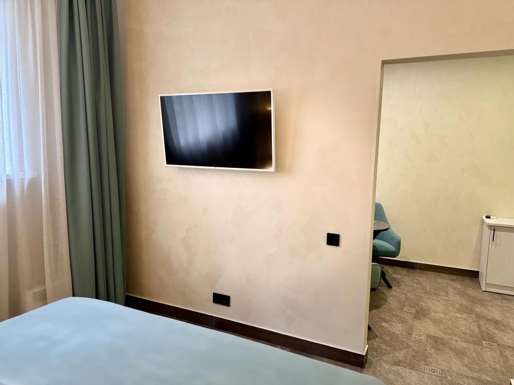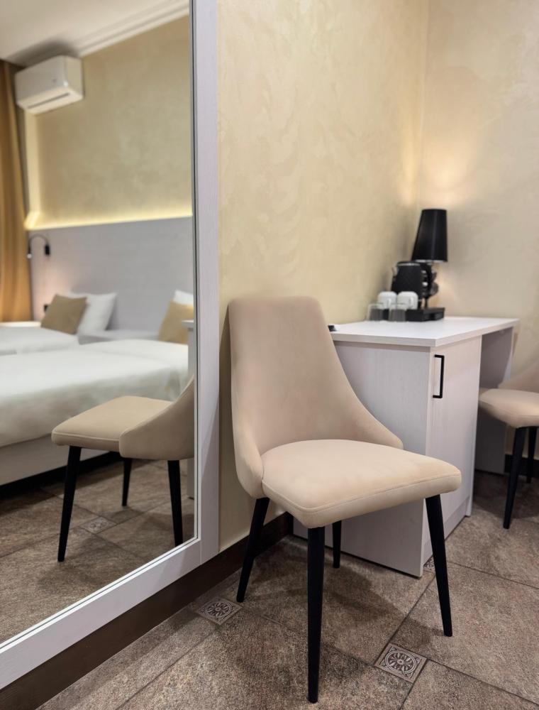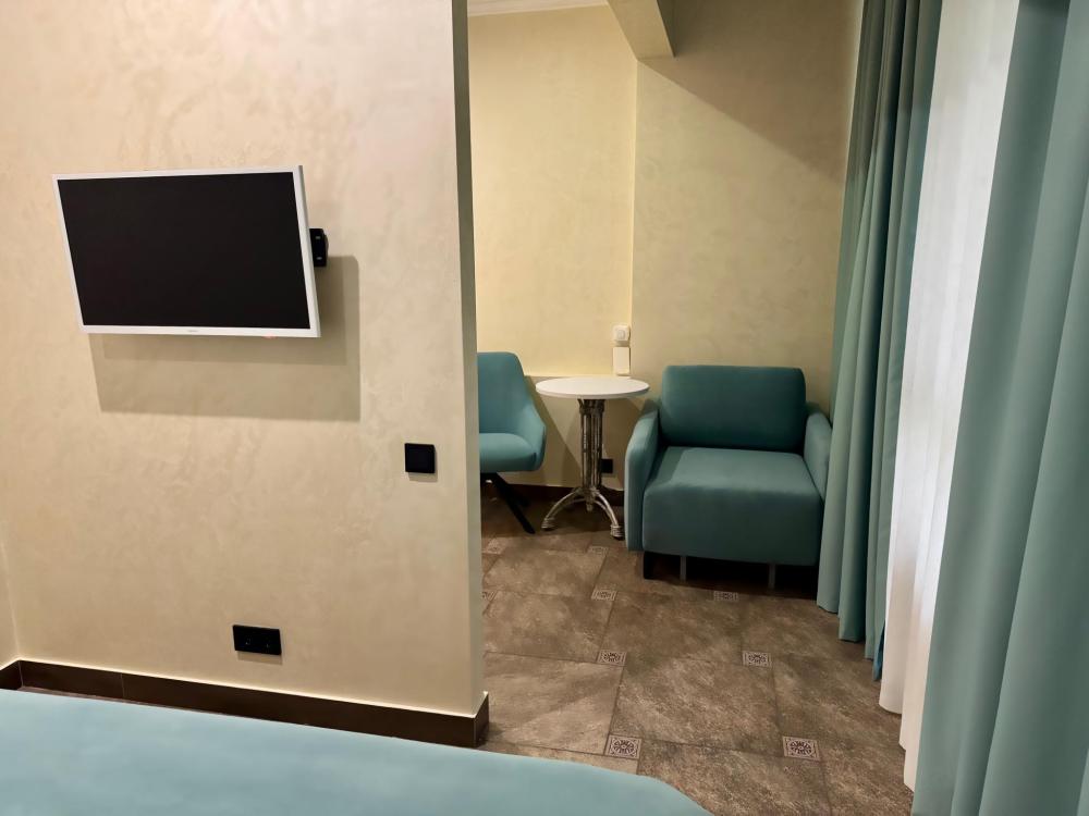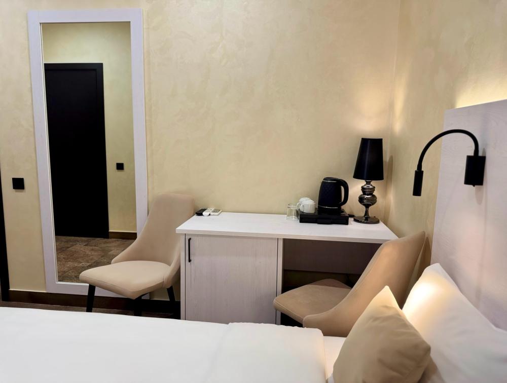 Полностью реновированные в июне 2025 года просторные номера с современным дизайном, оборудованные индивидуальным санузлом с душем. В номере имеется кровать размером king-size (по запросу - возможно сделать 2 раздельные кровати), ортопедические матрасы, кондиционер, мини-холодильник, сейф, телевизор с плоским экраном со спутниковыми каналами, телефон, рабочий стол со стульями, чайная станция с комплиментарными принадлежностями для приготовления чая, обеденный стол, шкаф, полка для багажа и обуви, гостиная зона с диваном-кроватью и креслами, большое настенное зеркало, регулируемые прикроватные светильники, подсветка изголовья кровати, напольный обогреватель. Номер оснащен индивидуальным санузлом с душем, феном, всеми необходимыми одноразовыми туалетно-косметическими принадлежностями, комплектом полотенец, тапочками, халатами. Максимальное число гостей в номере: три человека. Возможно размещение с ребенком (до 6 лет включительно) вместе с родителями на имеющейся кровати. Размеры спальных мест: одна двуспальная кровать 180х200 см или две односпальные кровати размером 90х200 см.