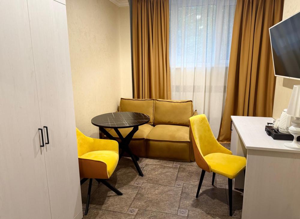 Просторный номер с двуспальной кроватью размера queen-size и гостиной зоной, оборудованный индивидуальным санузлом с душем. В номере имеется кондиционер, сейф, мини-холодильник, телевизор с плоским экраном со спутниковыми каналами, рабочий стол со стульями, прикроватные тумбочки, шкаф, журнальный столик, мягкие кресла, настенное зеркало, телефон. Ванная комната оснащена феном, комплектом полотенец, тапочками, одноразовыми туалетными и душевыми принадлежностями. Размеры спального места: 160х200 см. В номерах данной категории возможна установка дополнительного спального места для третьего гостя размером 90х200 см (любезно просим обратить внимание, услуга платная).