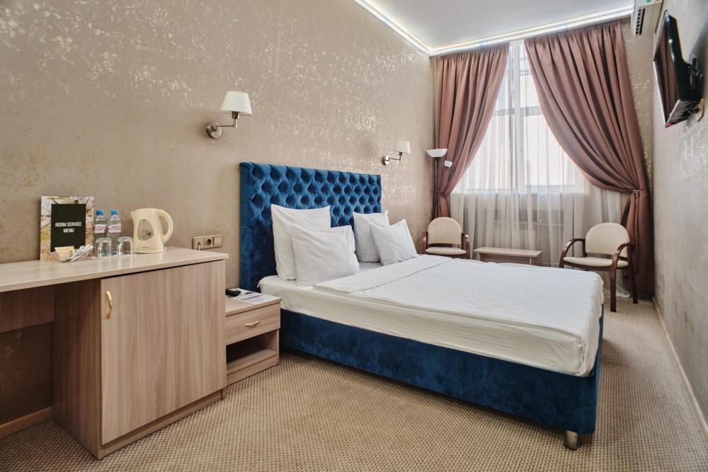 В номере: комфортная односпальная кровать, индивидуальное кондиционирование, телефон, телевизор, холодильник, электрический чайник, ванная комната с душем, косметические принадлежности, фен и тапочки. В номере отсутствует письменный стол.
