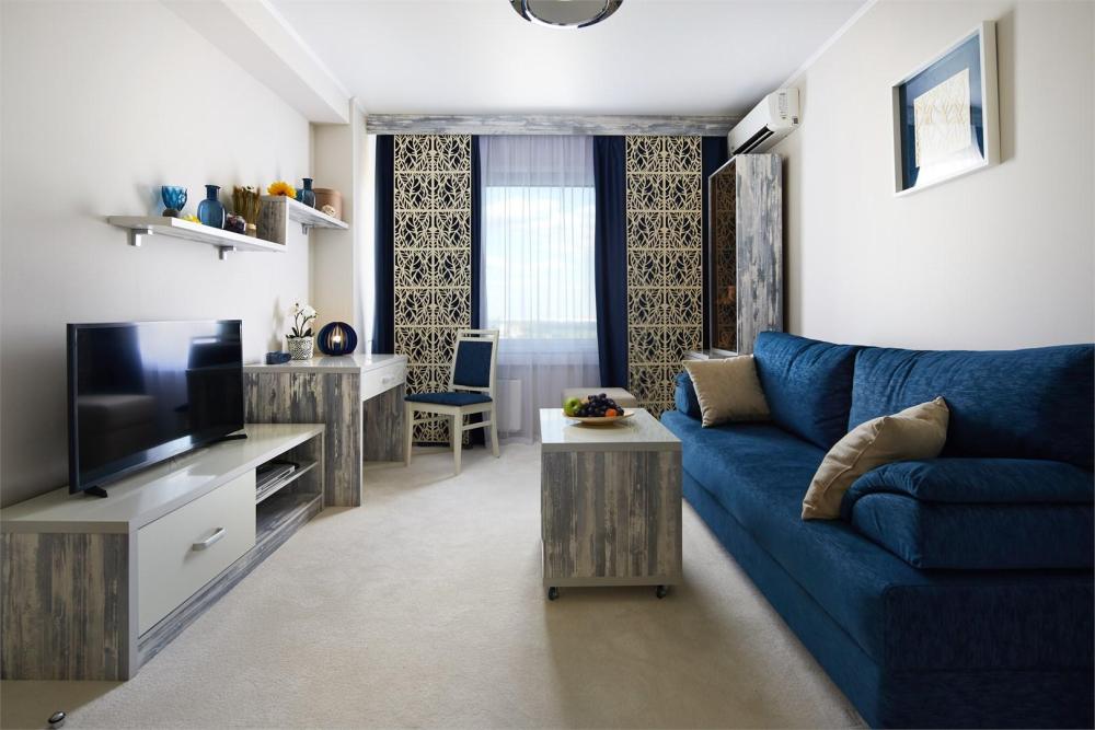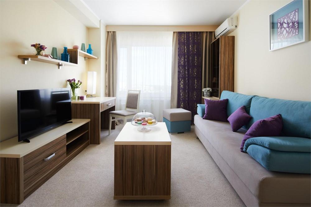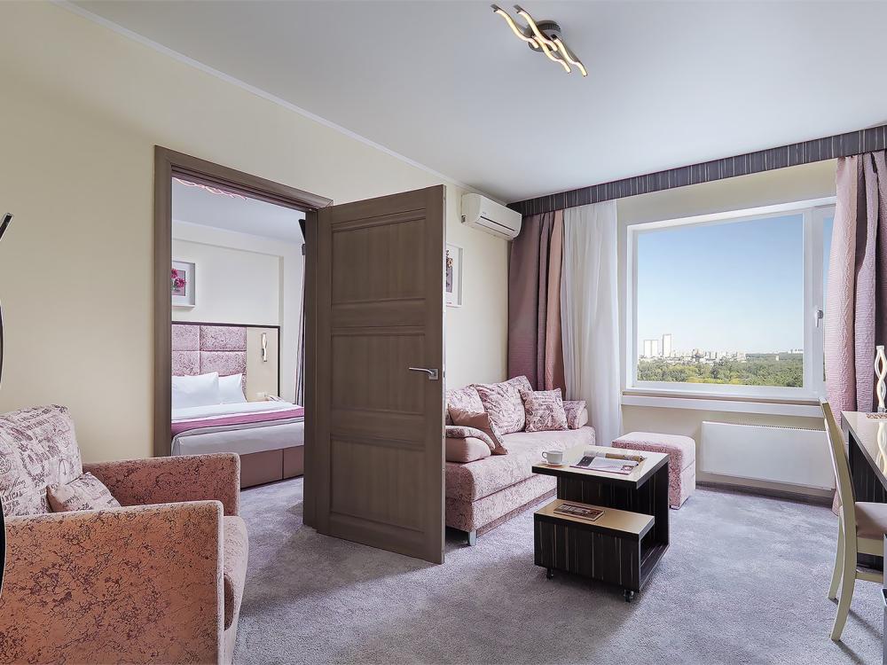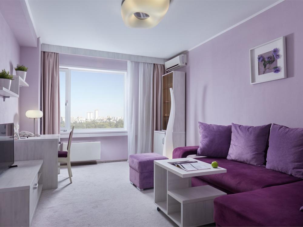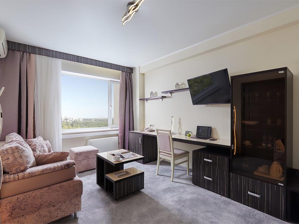 Номер предназначен для размещения 1 или 2 человек и имеет общую площадь 42 кв.м. Двухкомнатный номер, состоит из небольшой прихожей, ванной комнаты, В номере: электронные замки; мини - холодильник; бесплатный беспроводной интернет; ЖК телевизор; вентилятор; индивидуальный сейф; телефон; спутниковое телевидение; махровые тапочки, швейный набор, ложка для обуви, щетка для одежды, щетка для обуви,губка для обуви. Сан.узел:махровый халат,комплект полотенец (8 шт.), косметические средства для душа, зубной и бритвенный наборы, махровые тапочки, фен, весы, махровая салфетка, косметическое зеркало, телефон.