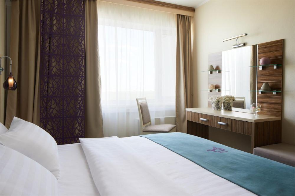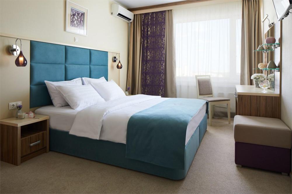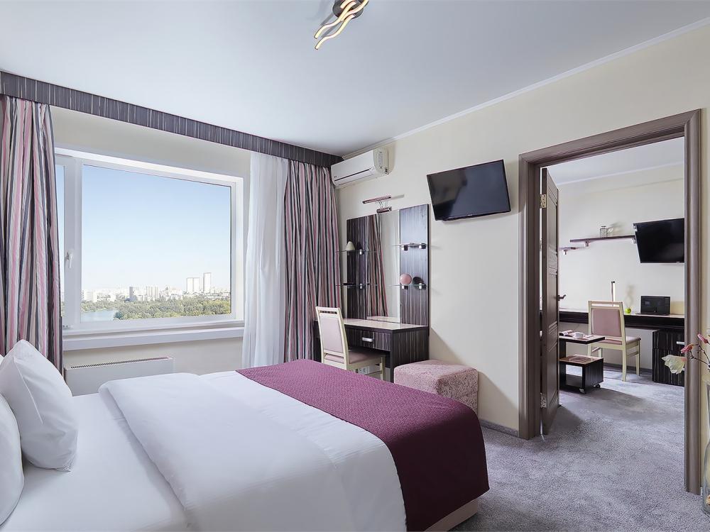 Номер предназначен для размещения 1 или 2 человек и имеет общую площадь 42 кв.м. Двухкомнатный номер, состоит из небольшой прихожей, ванной комнаты. В номере: электронные замки; мини - холодильник; бесплатный беспроводной интернет; ЖК телевизор; вентилятор; индивидуальный сейф; телефон; спутниковое телевидение; махровые тапочки, швейный набор, ложка для обуви, щетка для одежды, щетка для обуви,губка для обуви. Сан.узел: махровый халат, комплект полотенец (8 шт.), косметические средства для душа, зубной и бритвенный наборы, махровые тапочки, фен, весы, махровая салфетка, косметическое зеркало, телефон.