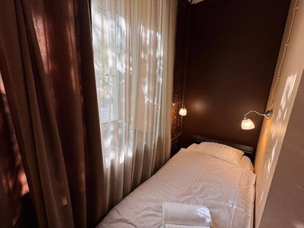 Эконом Для кого: путешественников, ценящих простоту и доступность; одиноких гостей или тех, кто планирует провести в номере минимальное время. Описание: Номера категории «Эконом» — это компактное и функциональное решение для тех, кто ищет недорогой, но уютный уголок для отдыха. Площадь номеров не превышает 10 м². В номере расположена 1,5 спальная кровать и отсутствуют окна. В номерах этой категории нет телевизора — идеальный вариант для тех, кто хочет отключиться от внешнего мира. Преимущества: Доступная цена Чисто и уютно Подходит для краткосрочного проживания"
