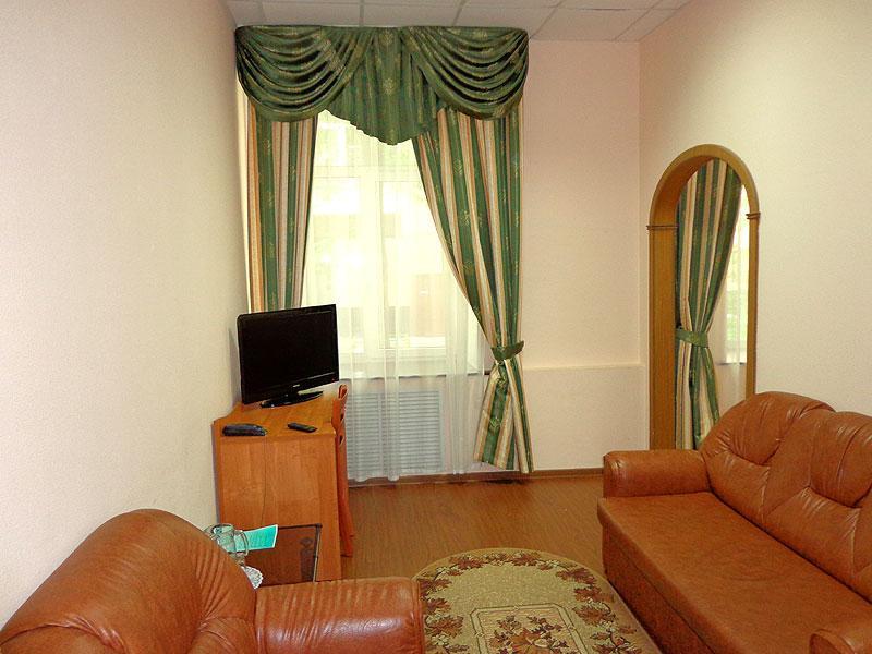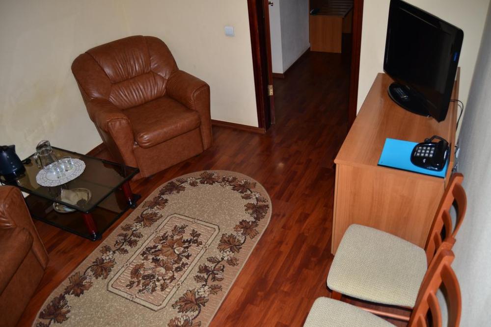 Двухкомнатный номер люкс включает в себя спальню с двуспальной кроватью и гостиную с диваном. В номере: санузел с душем, средство гигиены для первой необходимости, полотенца для личного пользования, спутниковое ТV, Wi-Fi, холодильник, телефон, кондиционер.