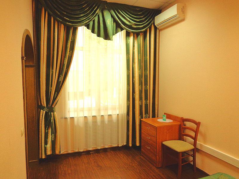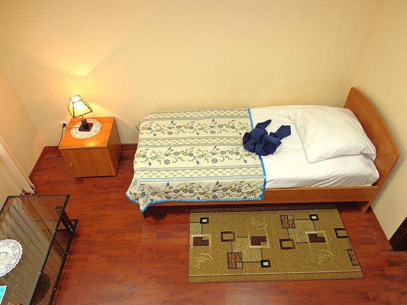 Номер стандарт с 1 односпальной кроватью. В номере: санузел с душем, средство гигиены для первой необходимости, полотенца для личного пользования, спутниковое ТV, Wi-Fi, холодильник, телефон.