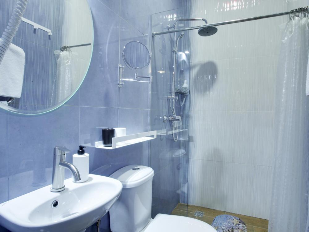 Номер на два этажа. Внизу расположена гостиная, зона мини кухней и набором, бытовой техники и посуды, обеденным столом и десятком стульев. На верхнем уровне расположена спальная зона с большой парящей кроватью и проектором, который подключен к Смарт ТВ. Также на верхнем уровне есть барная стойка, за которой удобно вечером пропустить бокальчик другой, перед сном. В ванной комнате есть отдельный душ с романтической подсветкой. В номере имеются большие итальянские батареи. Дополнительное спальное место( раскладная кровать) 600 рублей/сутки В апартаментах есть всё необходимое для комфортного отдыха, включая кондиционер, телевизор с плоским экраном, бесплатный Wi-Fi, мини-бар, умная колонка и сейф. Так же гости смогут воспользоваться селф-прачечной со стиральной машиной и гладильной доской.