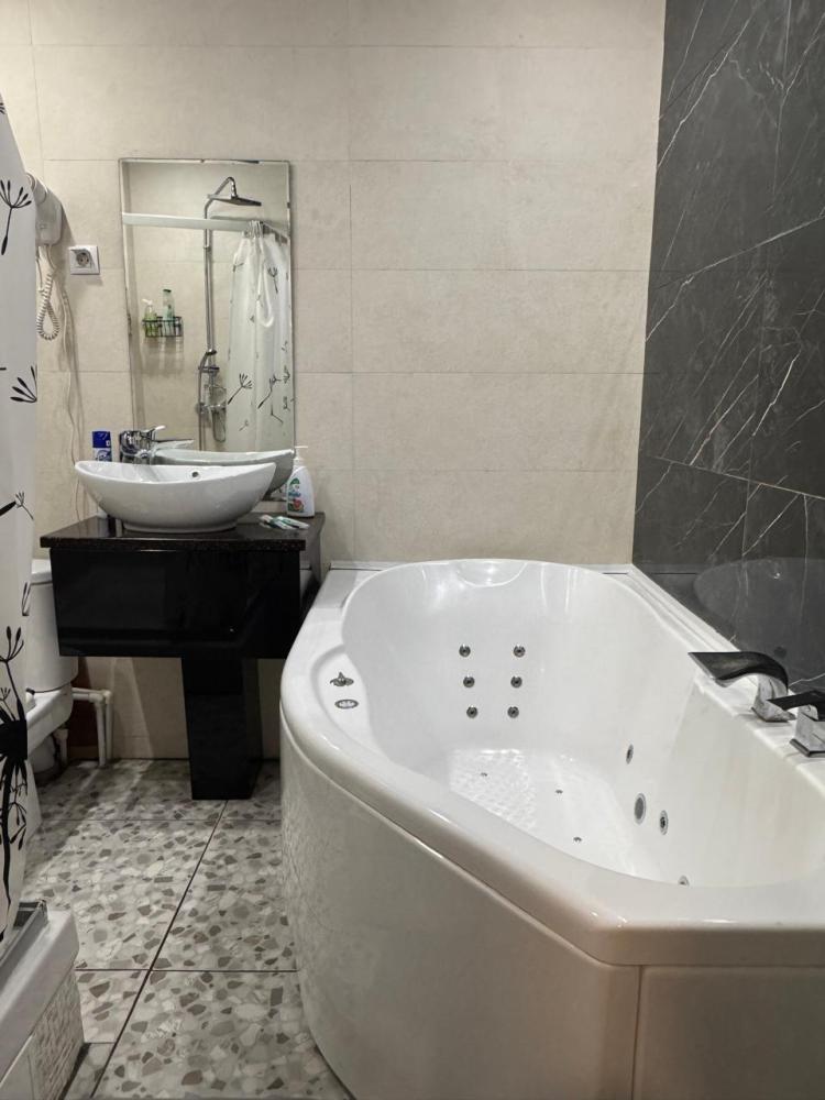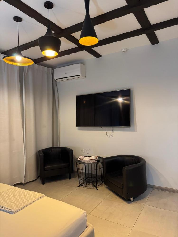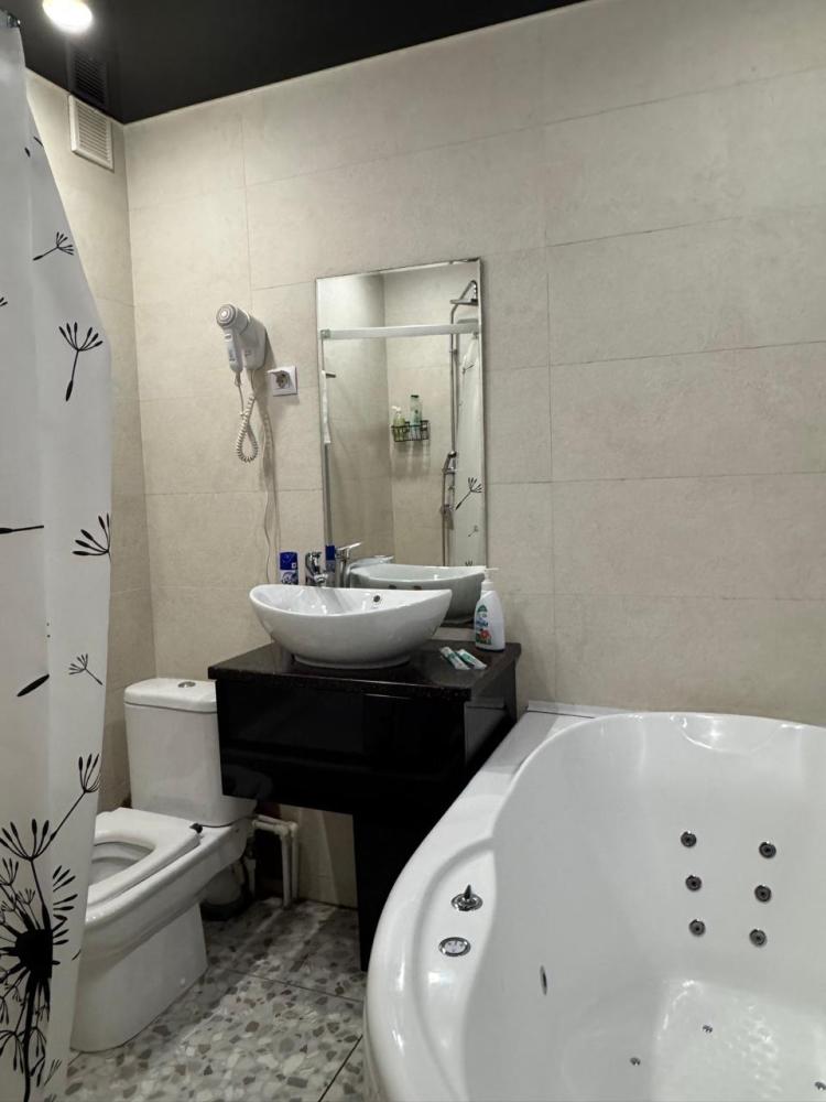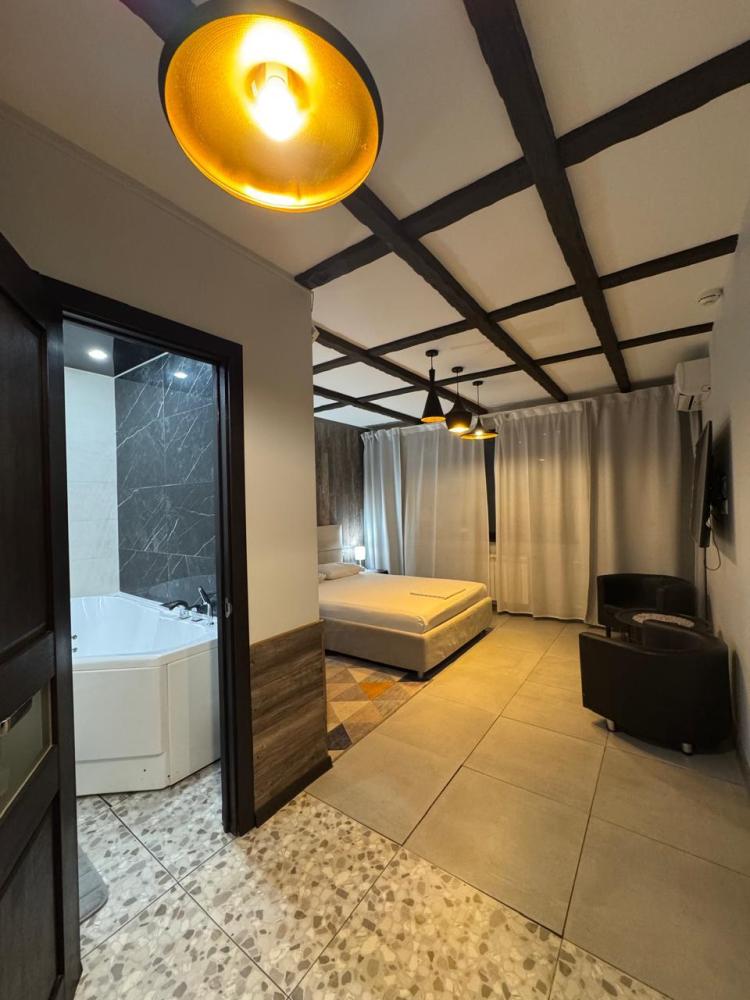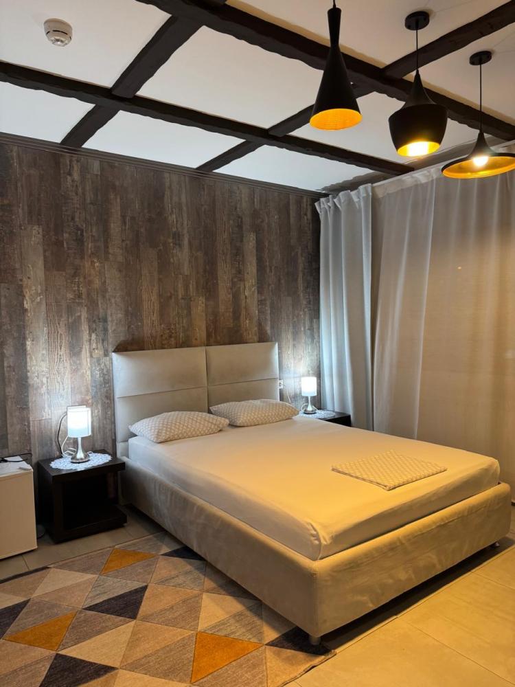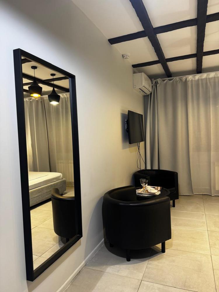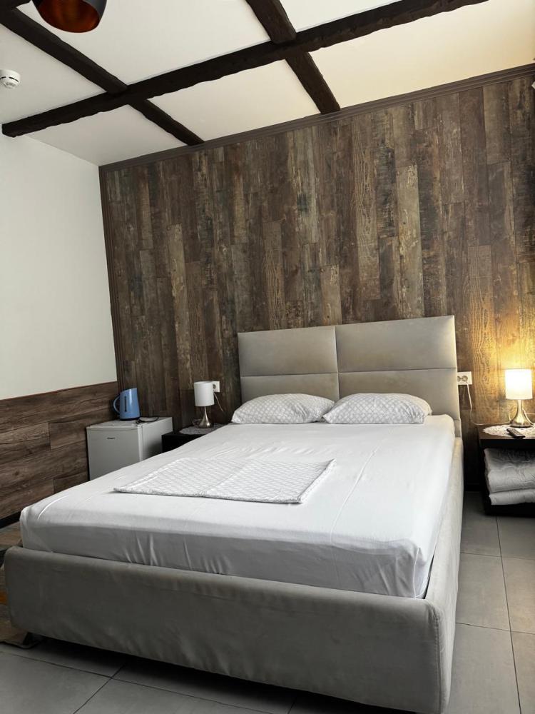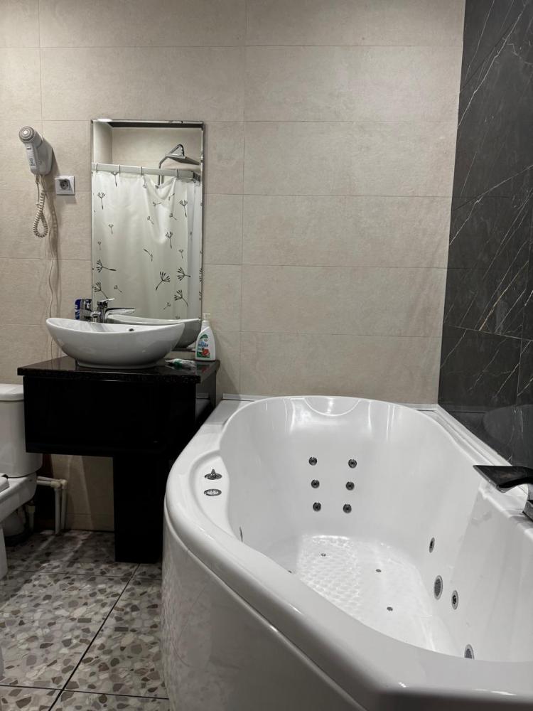 Номер «Делюкс » — просторный стильный однокомнатный номер с гидромассажной ванной , идеально подходящий для комфортного отдыха или романтической встречи. Основное оснащение: двуспальная кровать с качественным ортопедическим матрасом и хлопковым постельным бельём; вешалка для хранения одежды и личных вещей; большое зеркало, телевизор с кабельными и спутниковыми каналами; кондиционер с индивидуальным управлением для поддержания оптимальной температуры; бесплатный Wi‑Fi, два кресла и небольшой чайный столик, две прикроватные тумбочки с дампами для работы или чтения, мини холодильник, чайник. Ванная комната: просторная душевая кабина, унитаз и раковина с зеркалом; фен; комплект мягких полотенец для каждого гостя; набор гигиенических принадлежностей (шампунь, гель для душа, зубной набор), тапочки