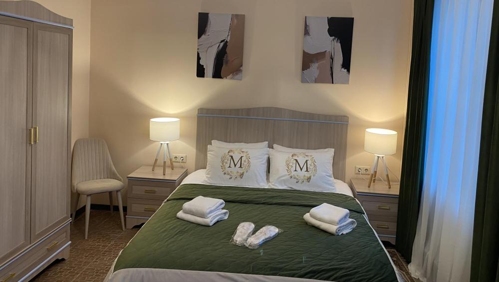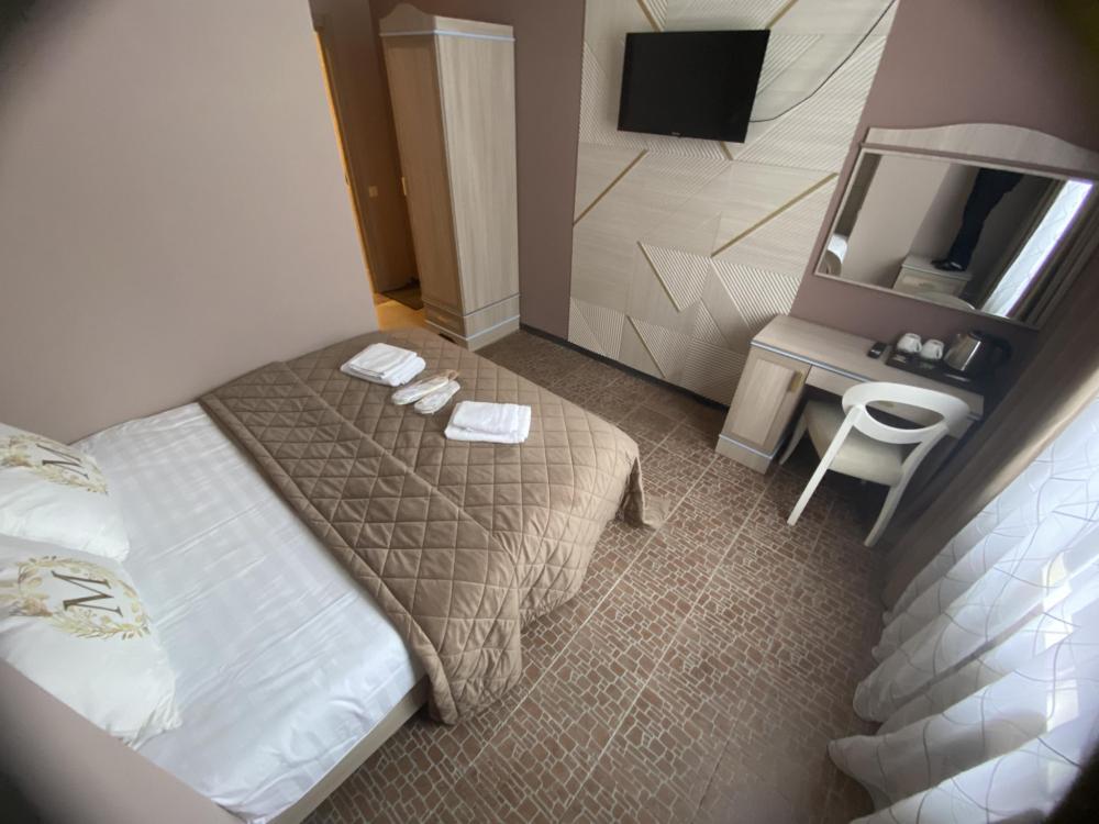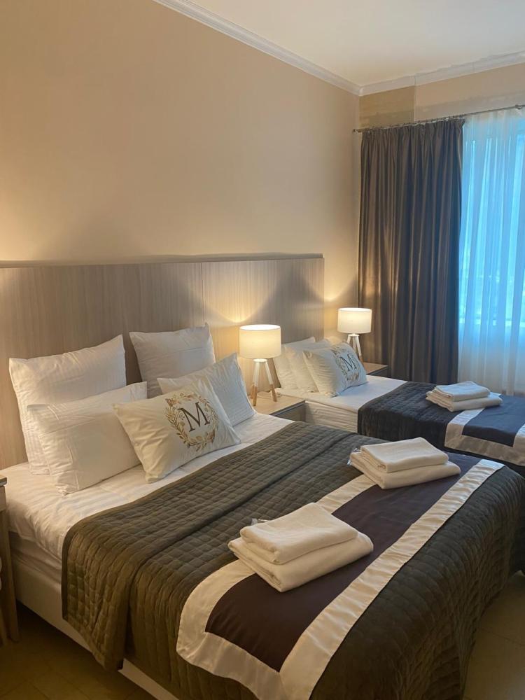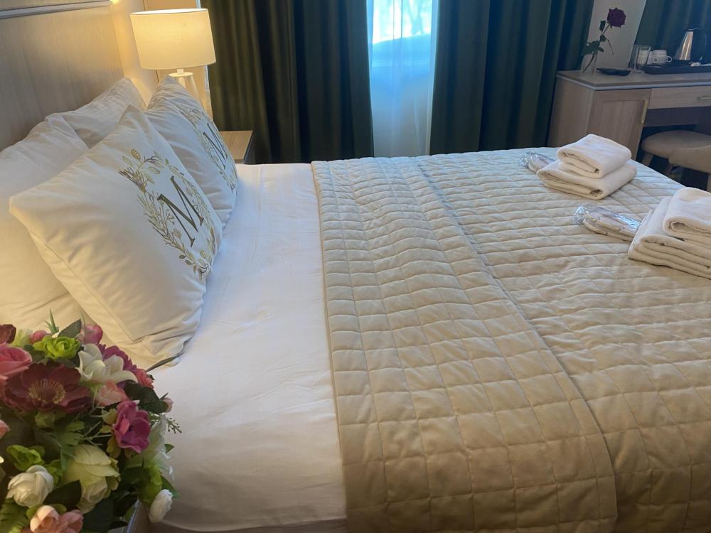 В номере: двуспальная кровать или две односпальные кровати, телевизор, фен, чайник, ванные принадлежности.