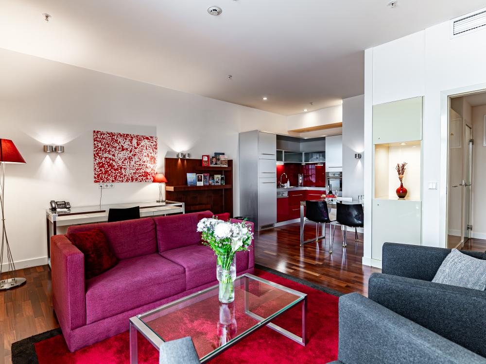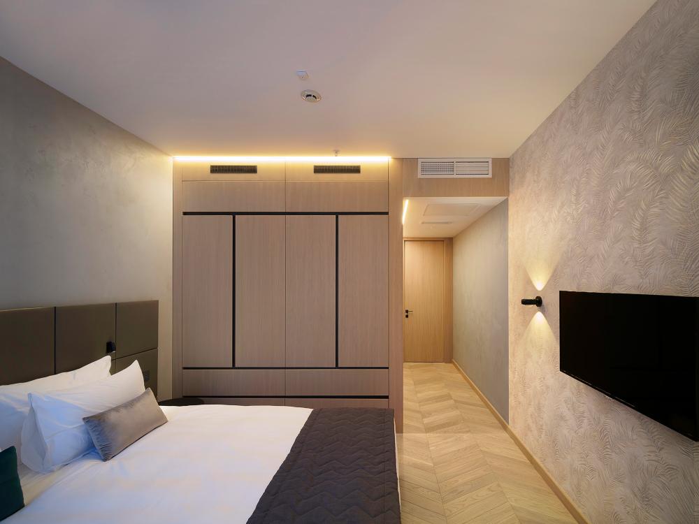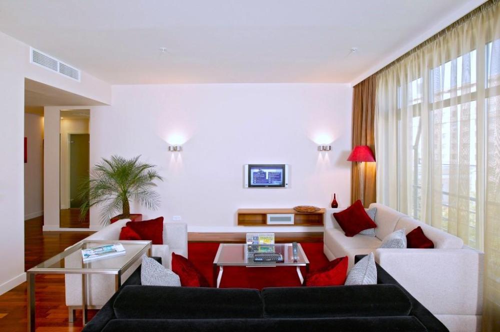 Двухкомнатные люкс-апартаменты категории One Bedroom Deluxe Suite пользуются особой популярностью среди гостей и являются идеальным вариантом как для семейного отдыха, так и для проживания во время деловых поездок. Номера площадью 50 кв метров состоят из комфортабельной спальни, отдельной просторной гостиной и полностью оборудованной кухонной зоной.