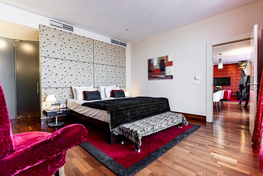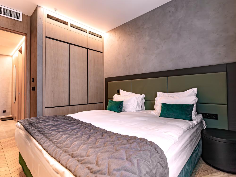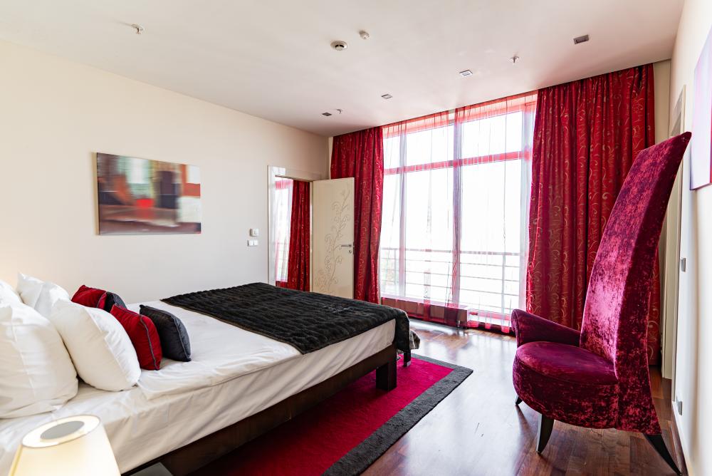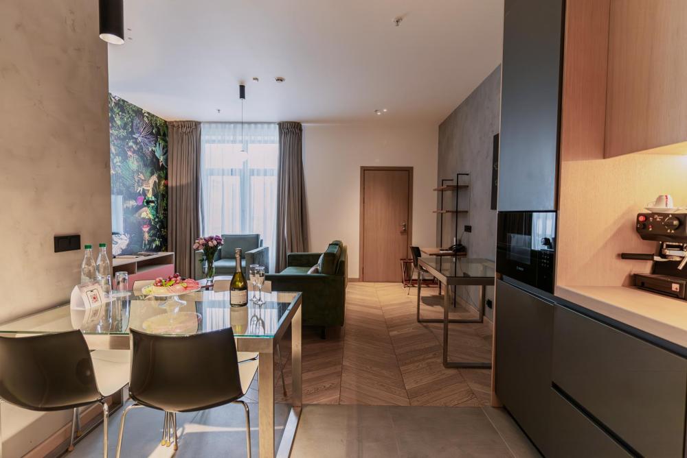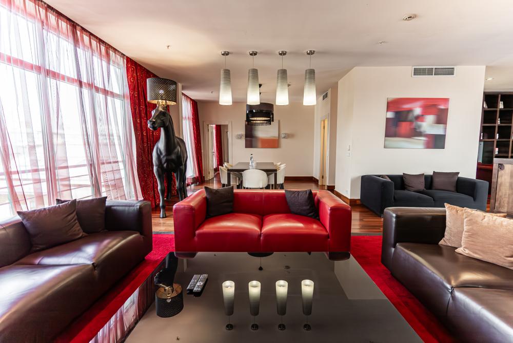 Просторные люксы с поистине королевским дизайном прекрасно подойдут для комфортабельного проживания туристов как семейного, так и бизнес-сегмента. Две большие спальни и полностью оборудованная кухня, а также две ванные комнаты сделают Ваш отдых особенно комфортным. И для деловых поездок номера оснащены всем необходимым: гостиной с мягкими диванами, рабочей зоной, столом, который подойдёт как для обеда, так и для проведения деловой встречи.