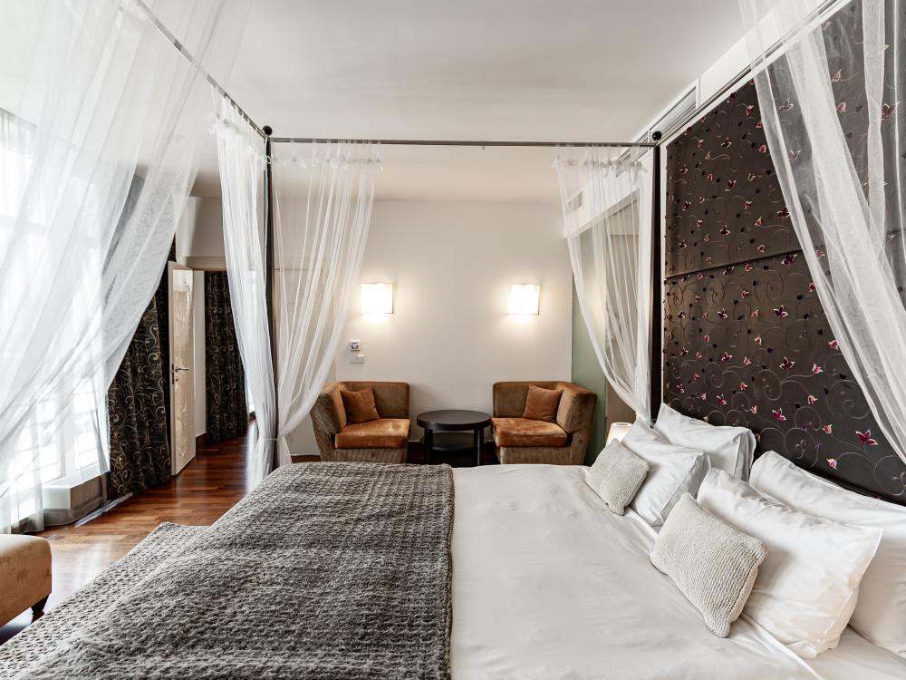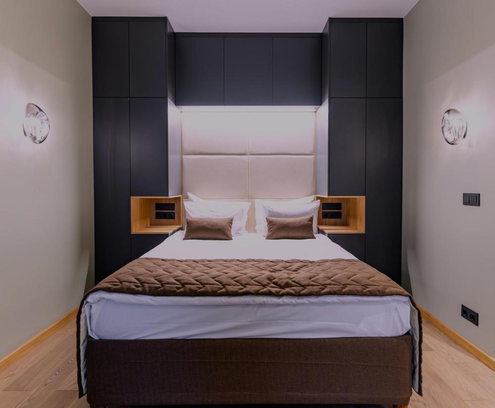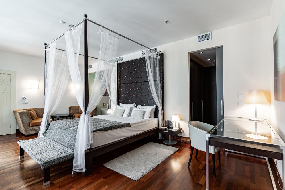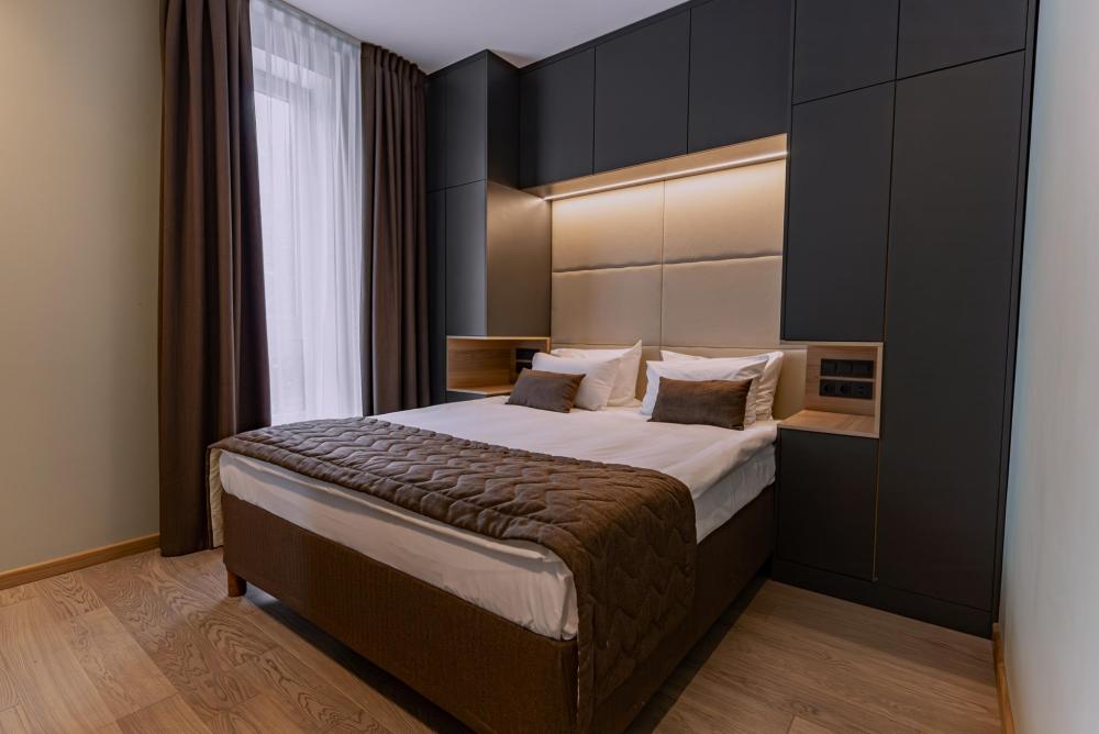 Просторные люксы с поистине королевским дизайном прекрасно подойдут для комфортабельного проживания туристов как семейного, так и бизнес-сегмента. Две большие спальни и полностью оборудованная кухня, а также две ванные комнаты сделают Ваш отдых особенно комфортным. И для деловых поездок номера оснащены всем необходимым: гостиной с мягкими диванами, рабочей зоной, столом, который подойдёт как для обеда, так и для проведения деловой встречи.