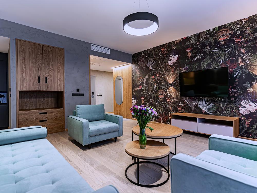 Люксовые апартаменты категории One Bedroom Premium Suite отличаются обновлённым современным дизайном, выполненным с учётом самых актуальных трендов. Представляют собой идеальное сочетание комфорта и утончённости стиля. Каждый номер состоит из спальни, просторной гостиной, запоминающейся особенностью которой является яркая стена в стиле картин Анри Руссо, и полностью оборудованной кухней. Площадь апартаментов составляет 50 кв метров.