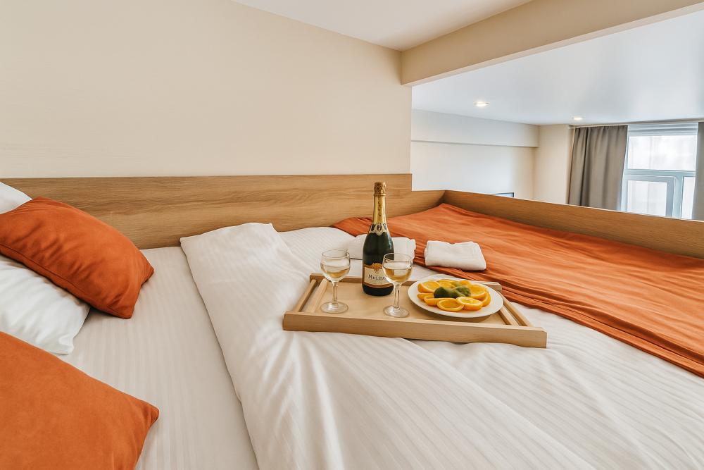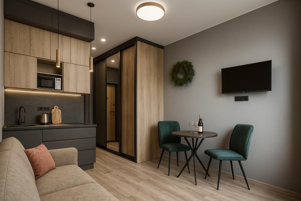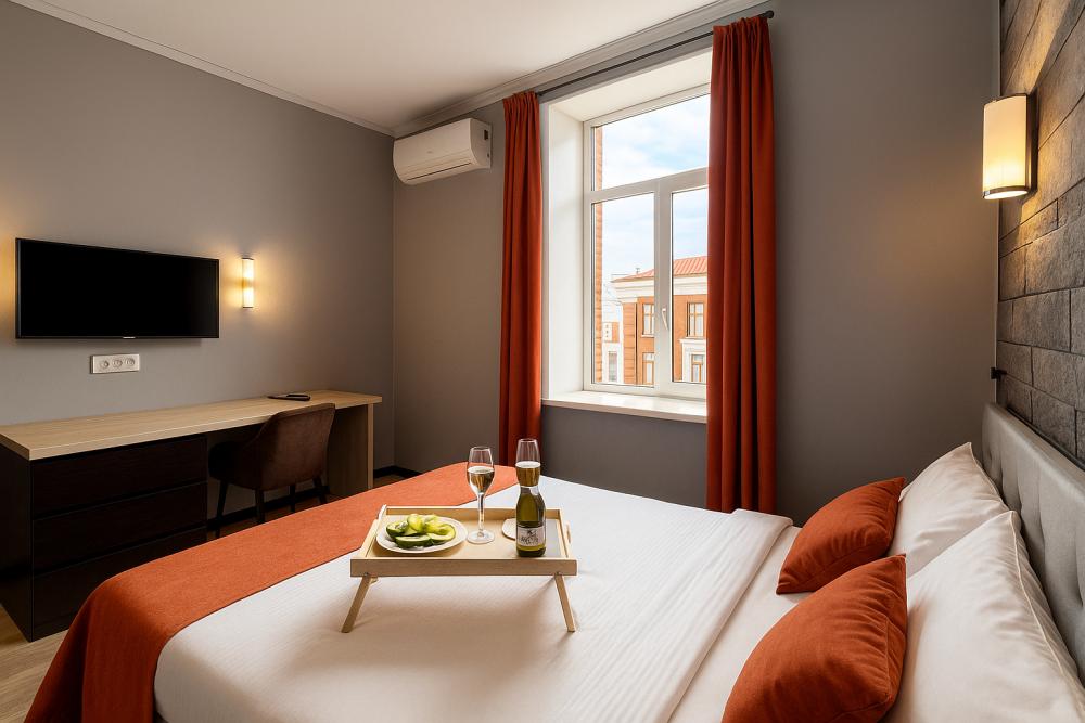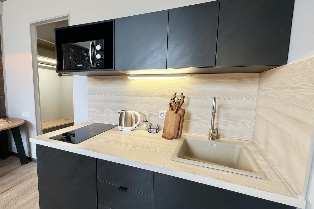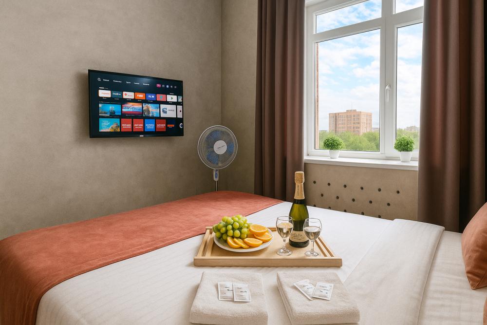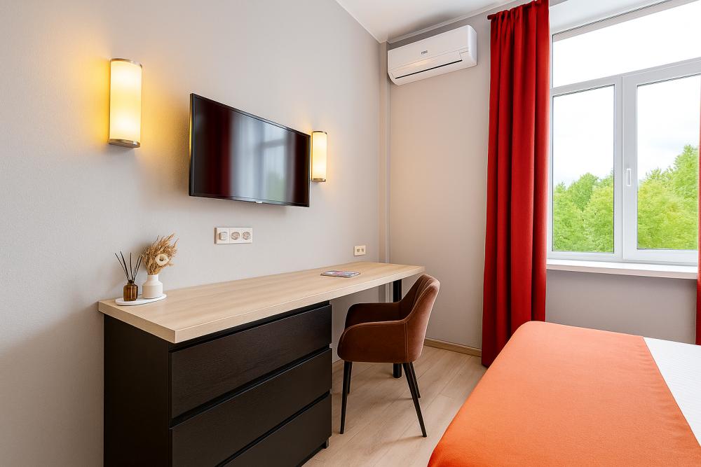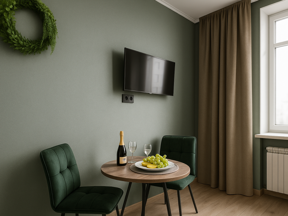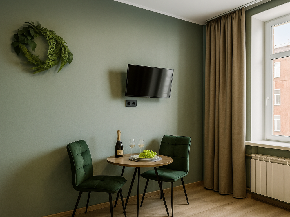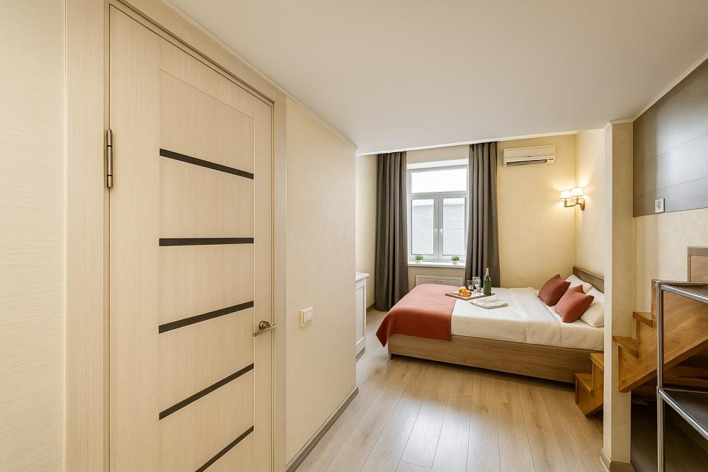 Небольшие, но уютные студии, с дизайнерским ремонтом, где есть всё необходимое для комфортного проживания: бесплатный Wi-Fi, Телевизор, плита, холодильник, микроволновка, фен, всё для сервировки стола. От стандартного отличается наличием столика. Уборка и дезинфекция проводятся после каждого заезда. Комфортное проживание гарантировано. Идеальный вариант для командированных сотрудников и тех, кто просто хочет отдохнуть в непринужденной обстановке.