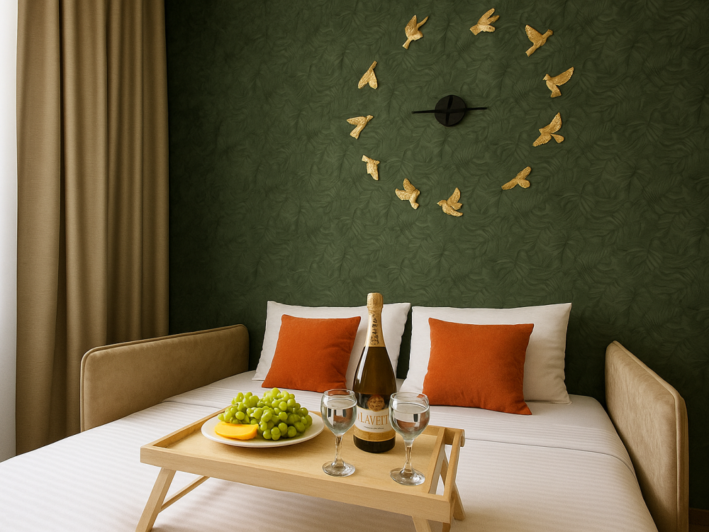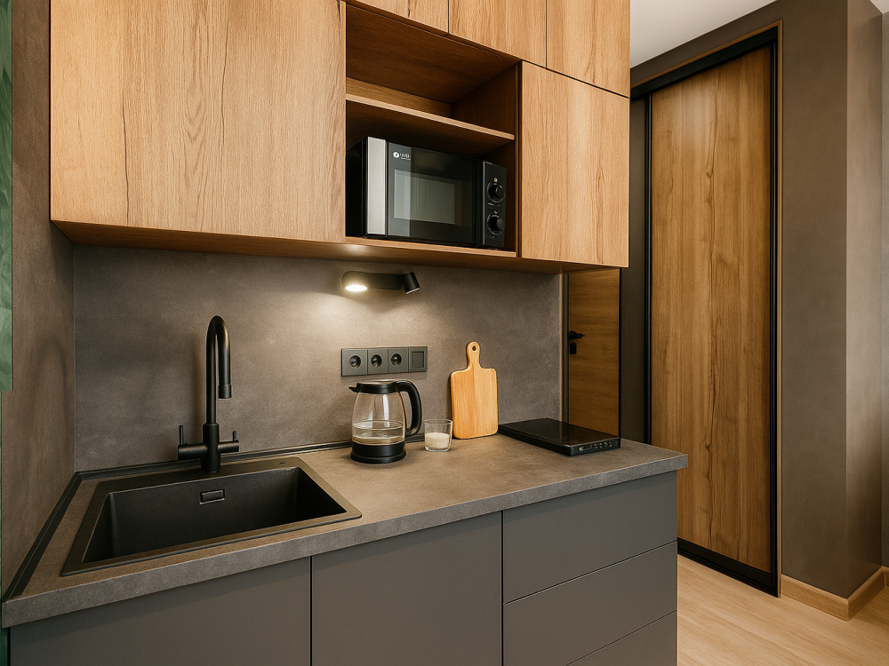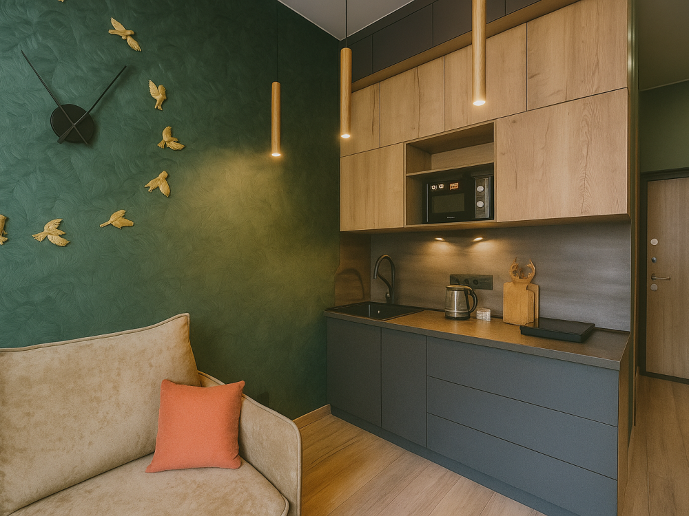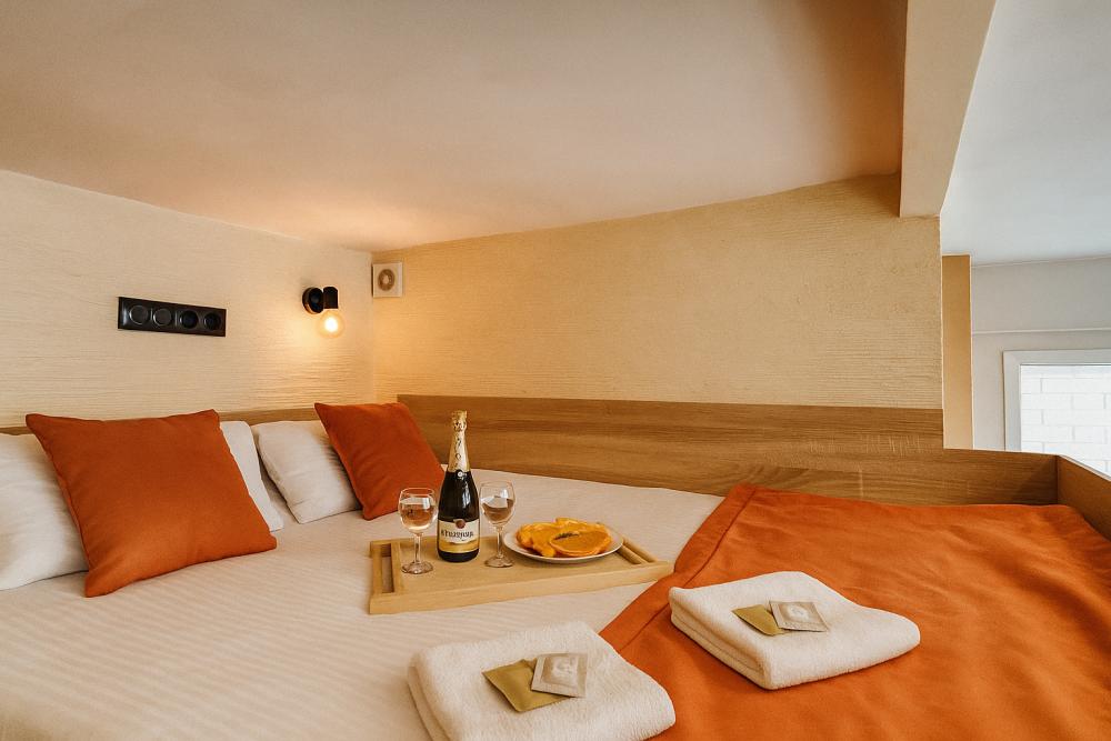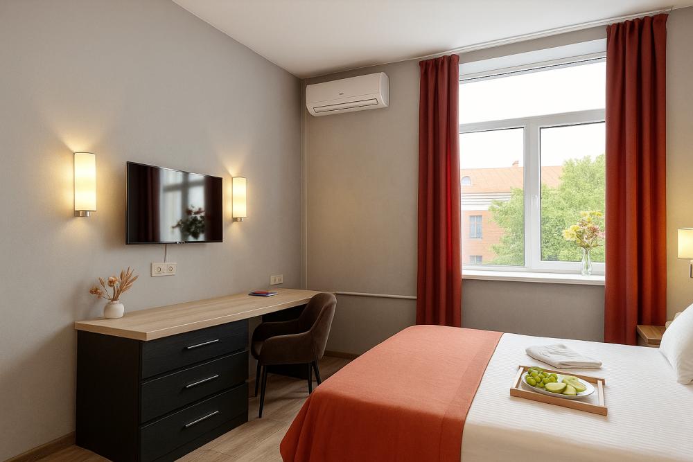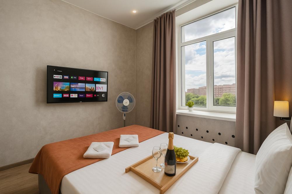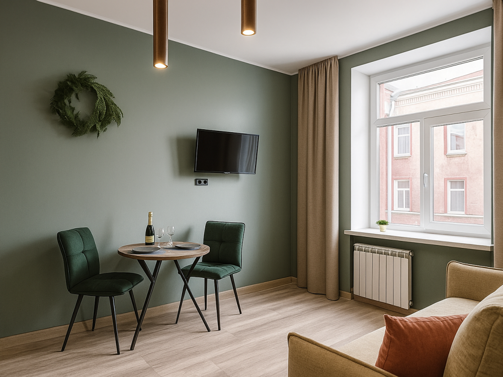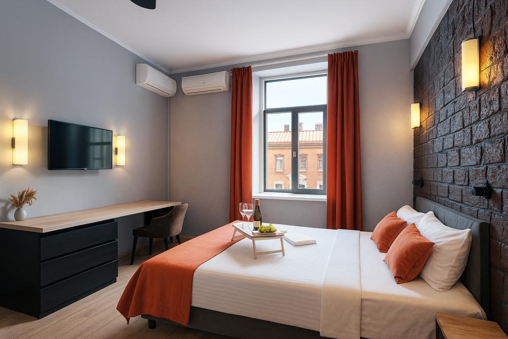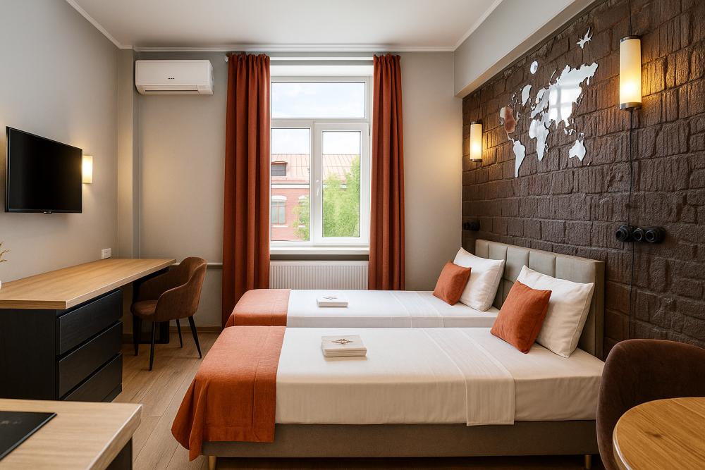 Небольшие, но уютные студии, с дизайнерским ремонтом, где есть всё необходимое для комфортного проживания: бесплатный Wi-Fi, Телевизор, плита, холодильник, микроволновка, фен, всё для сервировки стола. От стандартного отличается наличием столика. Уборка и дезинфекция проводятся после каждого заезда. Комфортное проживание гарантировано. Идеальный вариант для командированных сотрудников и тех, кто просто хочет отдохнуть в непринужденной обстановке.