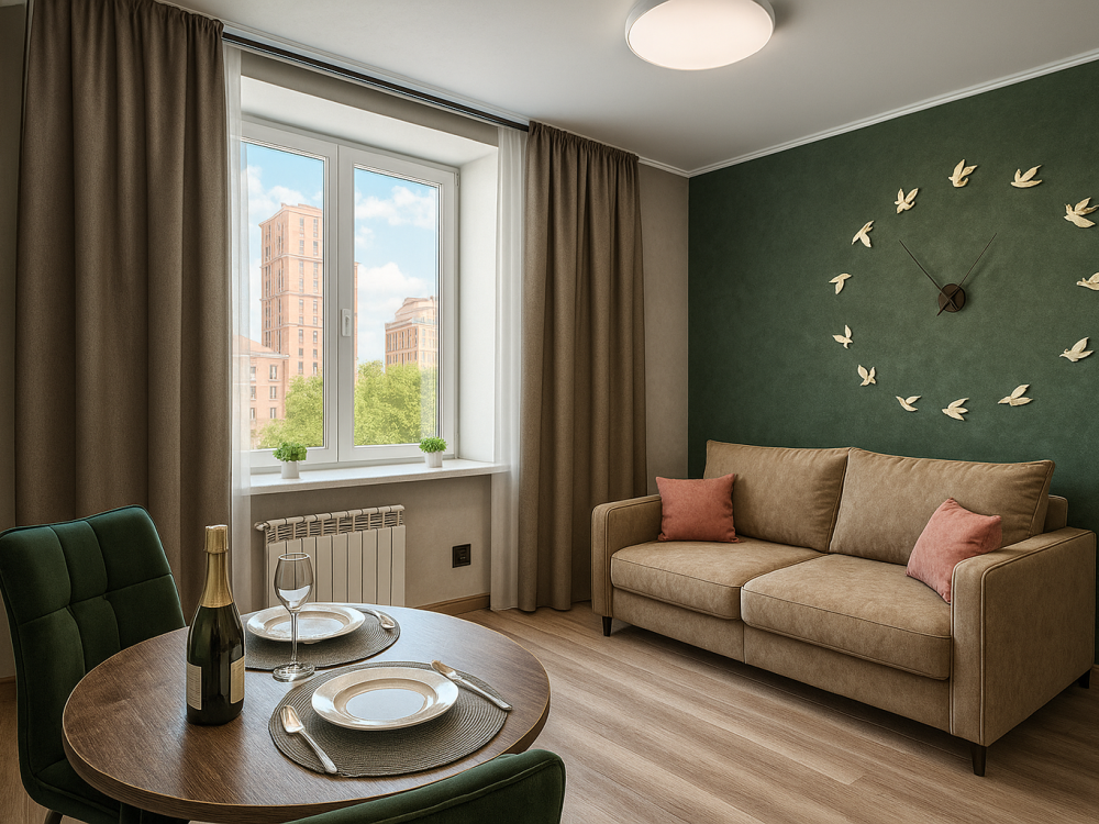 ООО Центр "Мой Дом" - ваш дом вдали от дома! Заезд: с 15:00 Выезд: до 12:00 (независимо от времени заезда) Официальные документы для отчетности, оплата по счету, можем заключить Договор на постоянное размещение командировочных. Апартамент рассчитан на 3 (2+1) человек: двуспальный диван и раскладушка. Апартамент подготавливается на 2 человек За дополнительное место доплата Почему выбирают нас? Комфортабельная мебель и стильный интерьер Бесплатный Wi-Fi и телевидение Полностью оборудованная кухня: плита, микроволновая печь, холодильник и посуда Белое постельное бельё страйт-сатин и мягкие белые полотенца Средства гигиены в ванной комнате (гель для душа и шампунь, одноразовые зубные щётки с пастой) Чайный приветственный набор Расположение: Метро Владыкино — 10 минут пешком МЦК Окружная — 15 минут пешком Станция Лихоборы — 12 минут пешком Удобный выезд на Алтуфьевское и Дмитровское шоссе До центра Москвы — около 25 минут на автомобиле Преимущества расположения: Апартаменты находятся в северной части Москвы в тихом и зелёном районе с развитой инфраструктурой. В шаговой доступности расположены продуктовые магазины, кафе, аптеки и ТЦ "Окружной". Рядом — парк Останкино, Главный ботанический сад и ВДНХ, что делает наше размещение особенно удобным для гостей, ценящих как деловые поездки, так и прогулки на свежем воздухе. Отличная транспортная доступность позволяет легко добраться до центра города и ключевых достопримечательностей столицы. Дополнительные услуги: Проживание: Проживание с питомцем (за каждое животное — 1000 рублей в сутки) + депозит 3.000 рублей Ранний заезд — 400 рублей/час. Минимальное время заезда — 13:00, заезд раньше по согласованию. Поздний выезд — 400 рублей/час. Максимальное время выезда — 14:00, выезд позже по согласованию. Уборка и стирка: Дополнительная уборка — 500 рублей (при длительном проживании уборка раз в 5 дней) Стирка с вашим порошком — 100 рублей, с нашим — 200 рублей (у администратора в ресепшене). Сушка — 200 рублей Развлечения и мелочи: Игровая приставка — 500 рублей + депозит 2.000 рублей Сушилка для обуви — 200 рублей Игральные карты — 100 рублей Напитки и закуски: Кофе — 150 рублей (из кофемашины) Кофе 3 в 1 — 50 рублей Чай в пирамидках — 40 рублей Снеки: Роллтон пюре — 100 рублей Доширак лапша — 120 рублей Круассан — 90 рублей Чокопай — 80 рублей Сникерс — 100 рублей Чипсы — 120 рублей Сухарики — 50 рублей Влажные салфетки — 50 рублей Правила проживания: Курение в апартаменте запрещено; Шумные мероприятия в апартаменте не допускаются; В апартаменте запрещается проживание гостей, не указанных в заявке на бронирование, без согласования менеджером. Актуальные цены доступны в календаре. Просто выберите дату, количество дней и гостей, и узнайте стоимость! Забронируйте прямо сейчас и проведите незабываемое время!