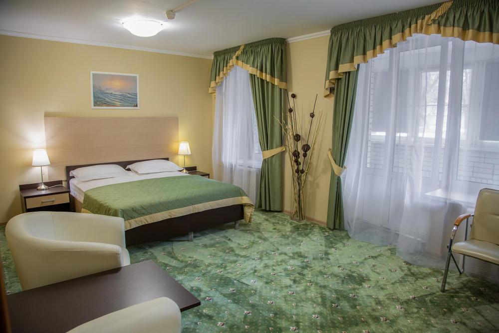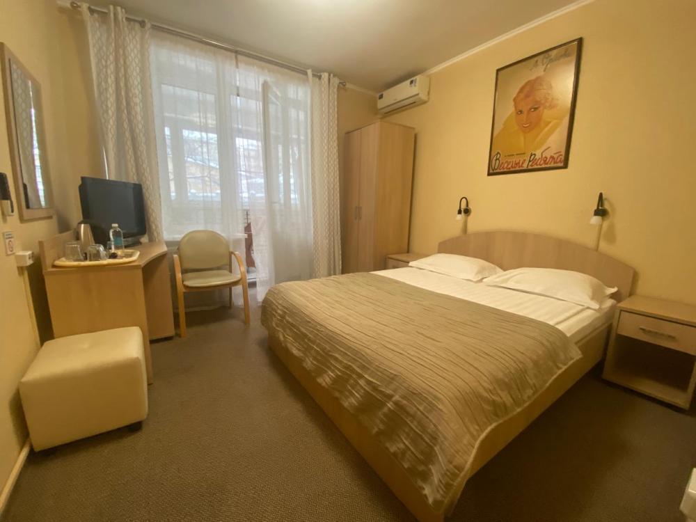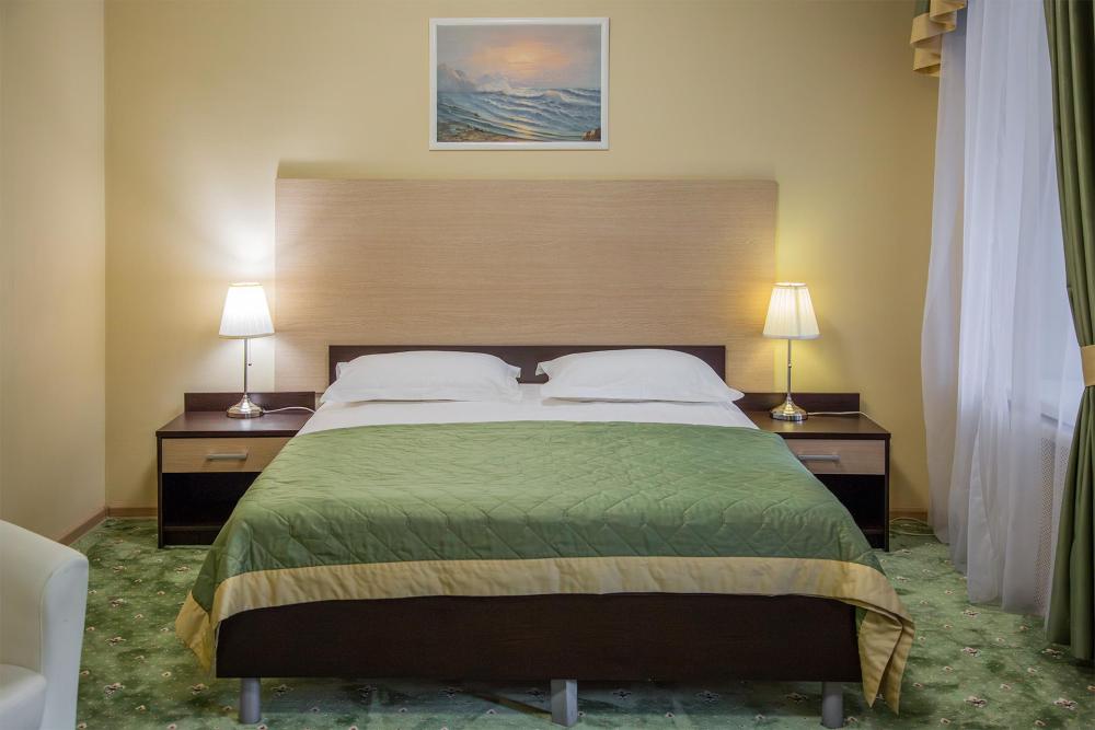В номере: двуспальная кровать прикроватная тумбочка шкаф телевизор (спутниковое телевидение) сплит-система холодильник, чайник, посуда стол с зеркалом телефон сейф балкон В ванной: душевая кабина, раковина, туалет, средства индивидуальной гигиены.