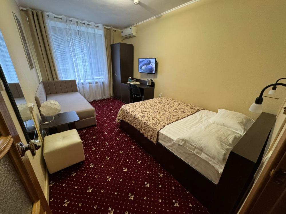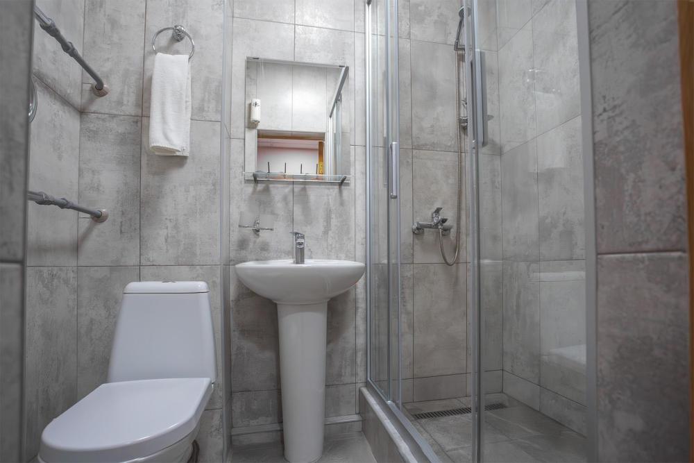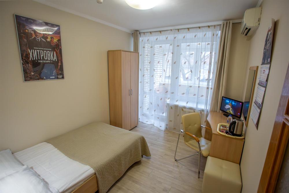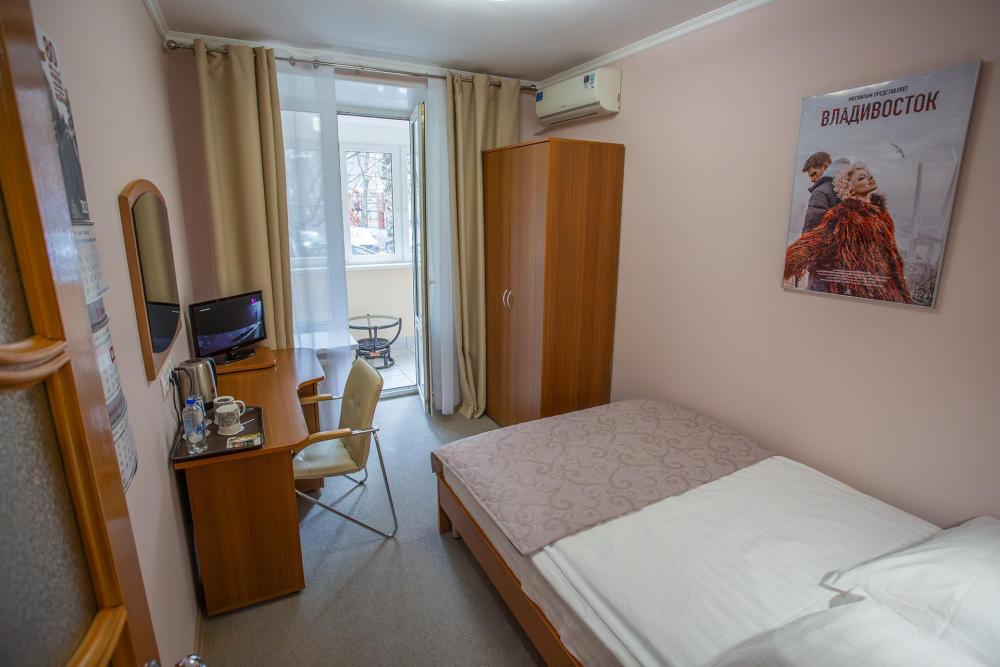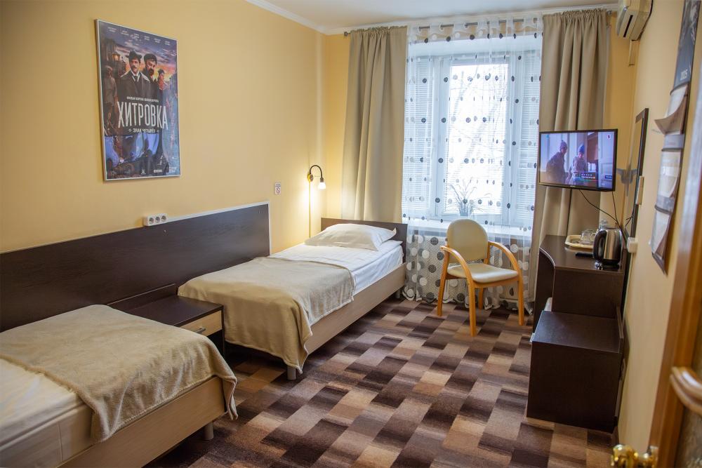 В номере: две односпальные кровати две прикроватные тумбочки стол с зеркалом шкаф телевизор (спутниковое телевидение) телефон холодильник сплит-система. В ванной: душевая кабина, раковина, туалет, средства индивидуальной гигиены.