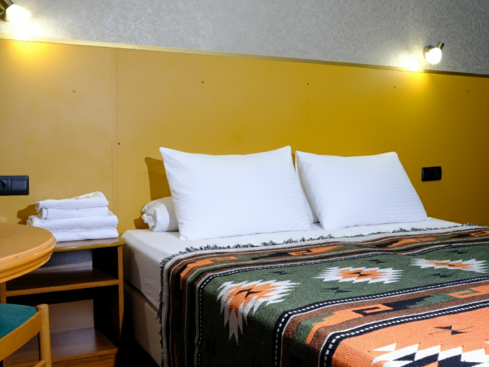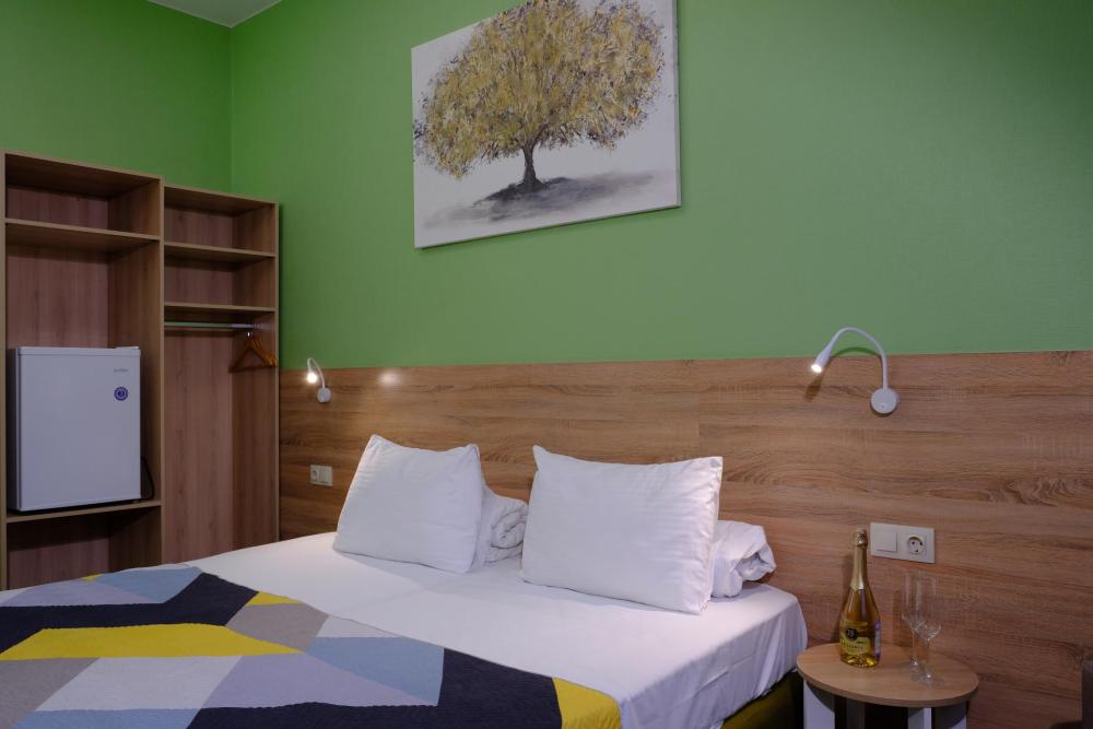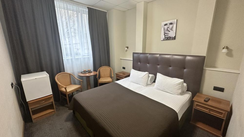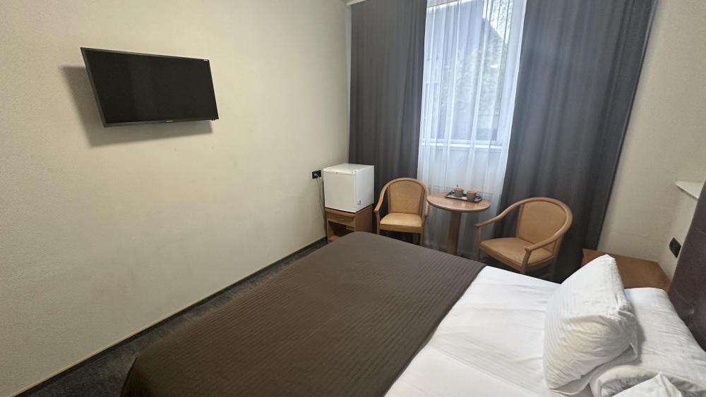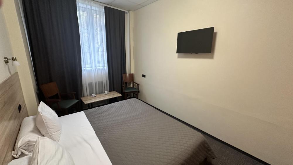 Двухместный номер, укомплектованный всем необходимым для комфортного проживания. Подходит для постояльцев с ограниченным бюджетом и деловых людей в командировке на 1-2 дня. В одном блоке 2 номера с общей ванной комнатой. В комнате возможно размещение на 2 кроватях, альтернативный вариант - 1 двуспальная кровать. Номер укомплектован холодильником, телевизором и набором посуды.