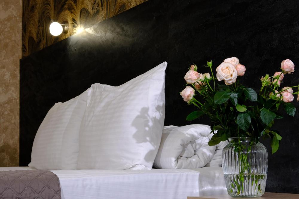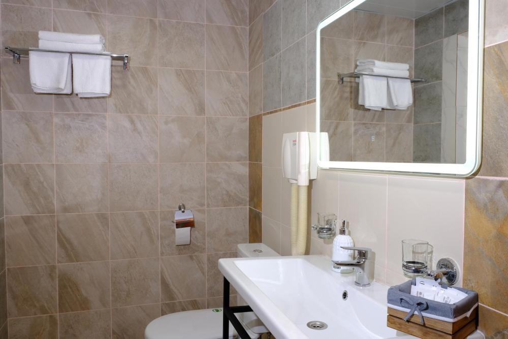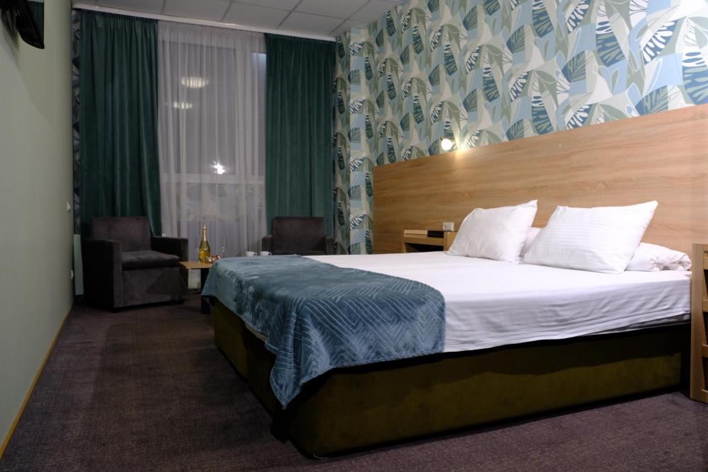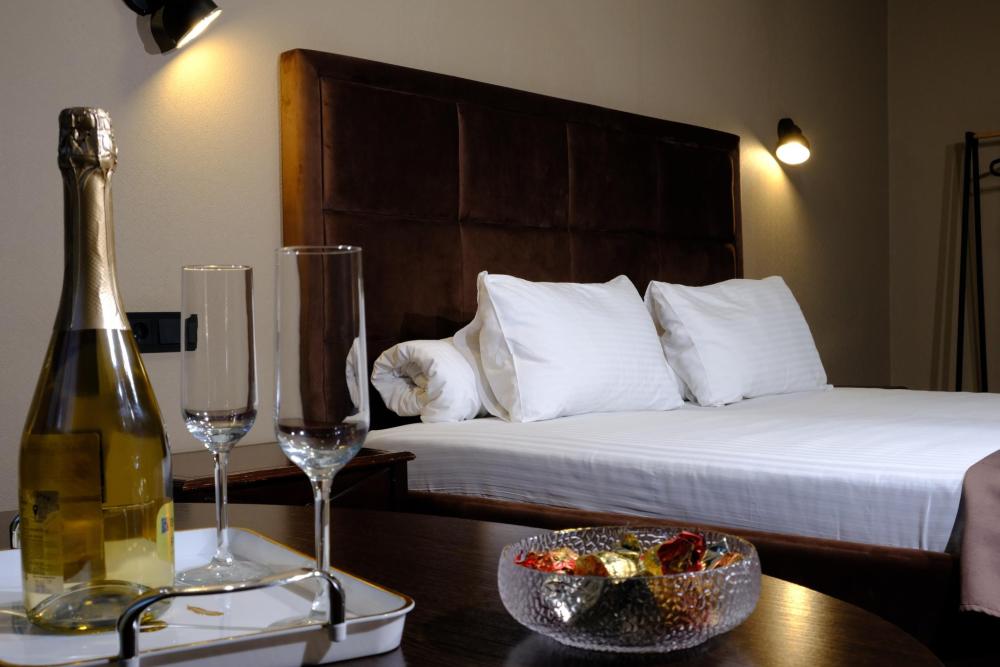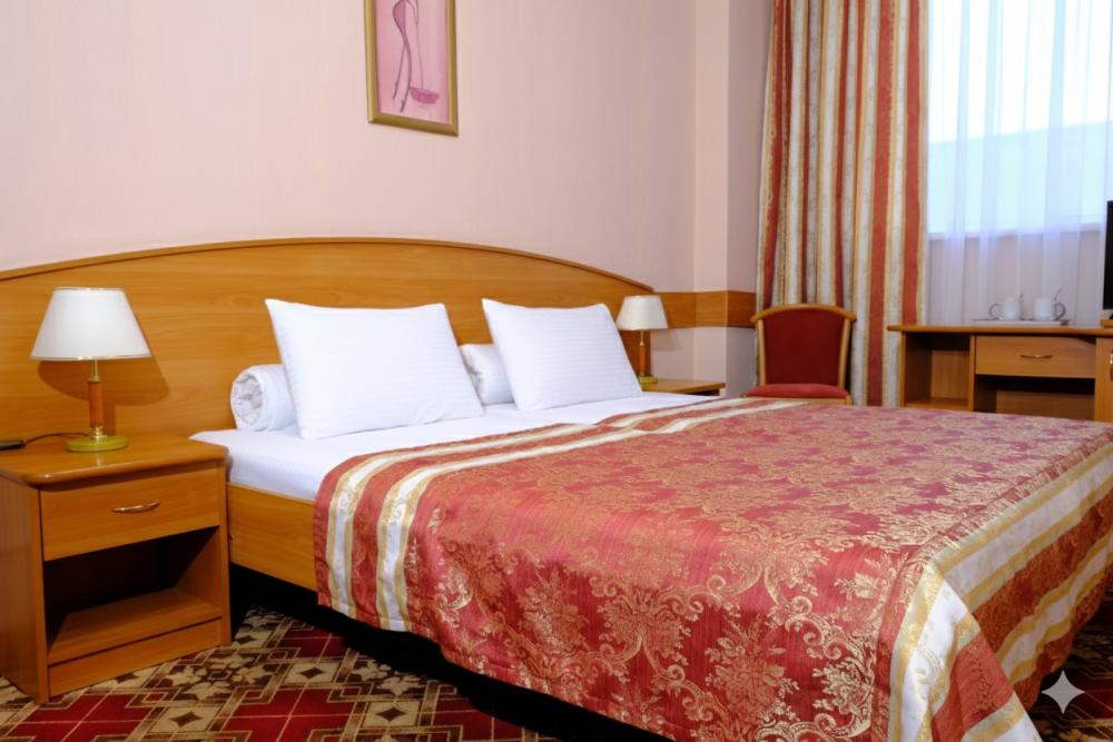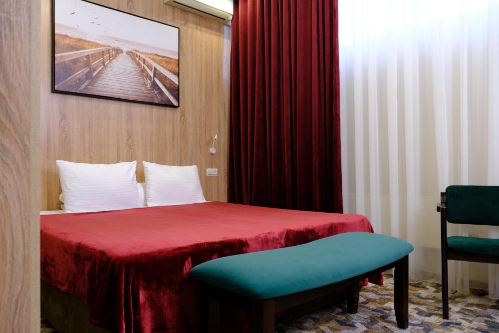 Двухместный номер с двуспальной кроватью. Номер оснащен телевизором, местом для хранения одежды, кондиционером, ванной комнатой, предоставляются туалетно-косметические принадлежности, халаты.