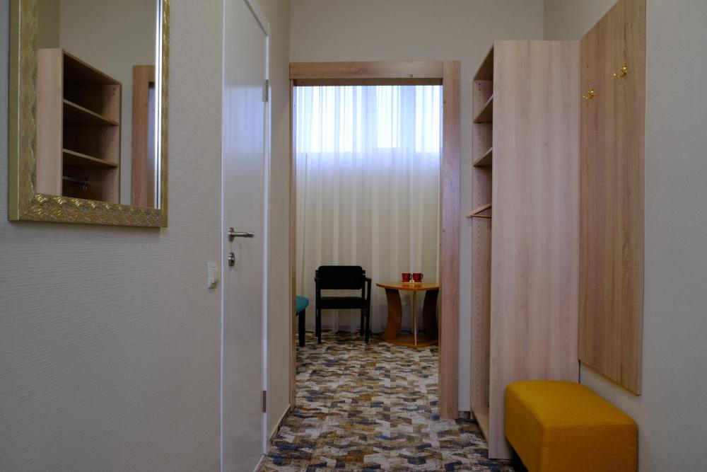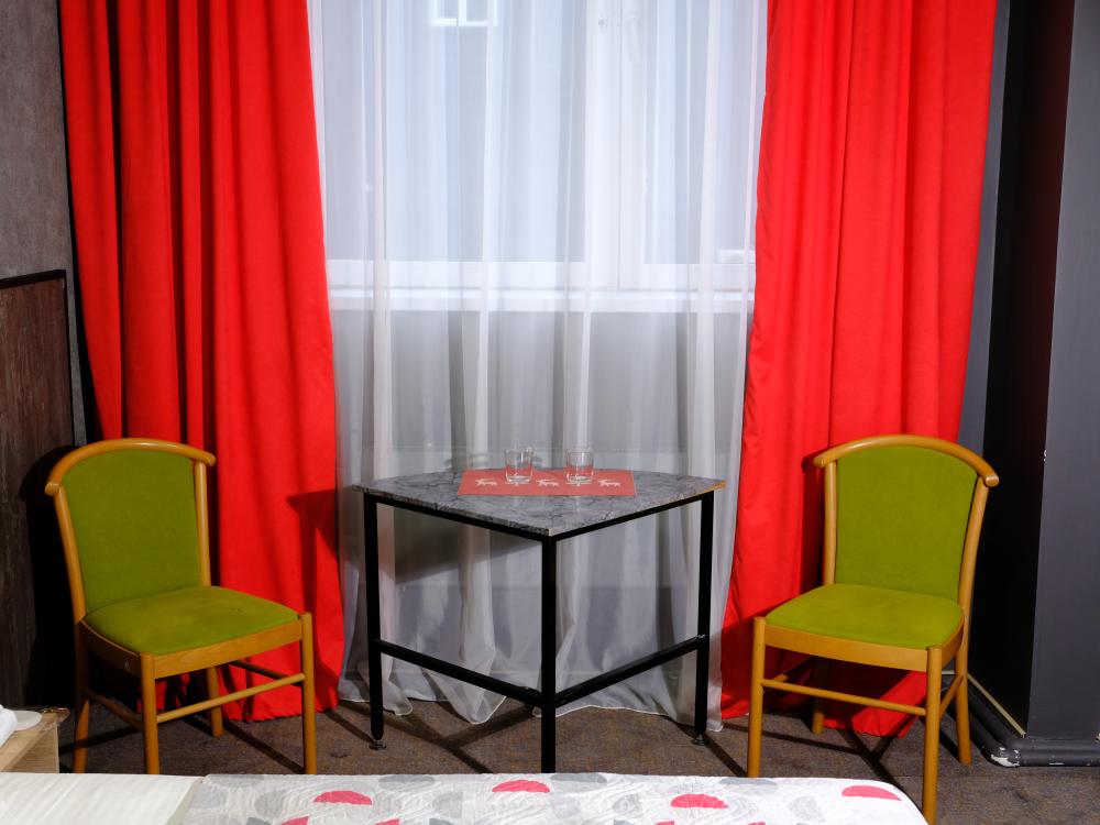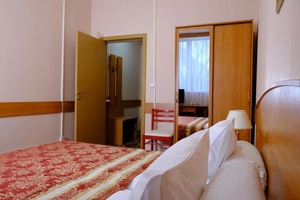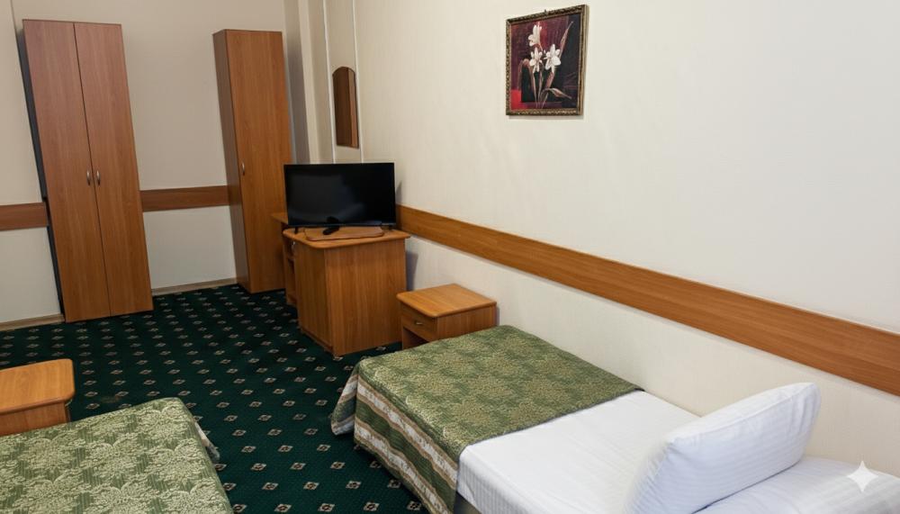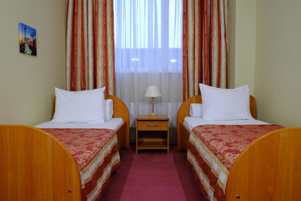 Двухместный номер с двумя односпальными кроватями. Номер оснащен телевизором, местом для хранения одежды, кондиционером, предоставляются туалетно-косметические принадлежности. Общая ванная комната находится на этаже.