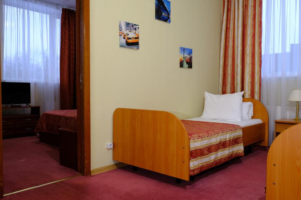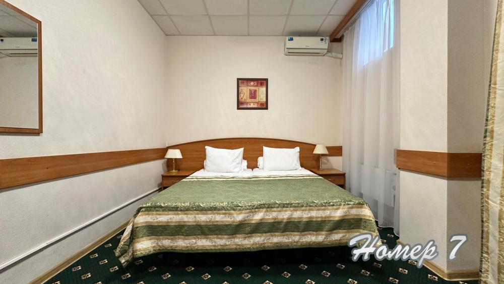 Двухместный стандартный номер, укомплектованный всем необходимым для комфортного проживания. Подходит для пар. Номер укомплектован холодильником, телевизором и набором посуды. Возможна установка дополнительного спального места.