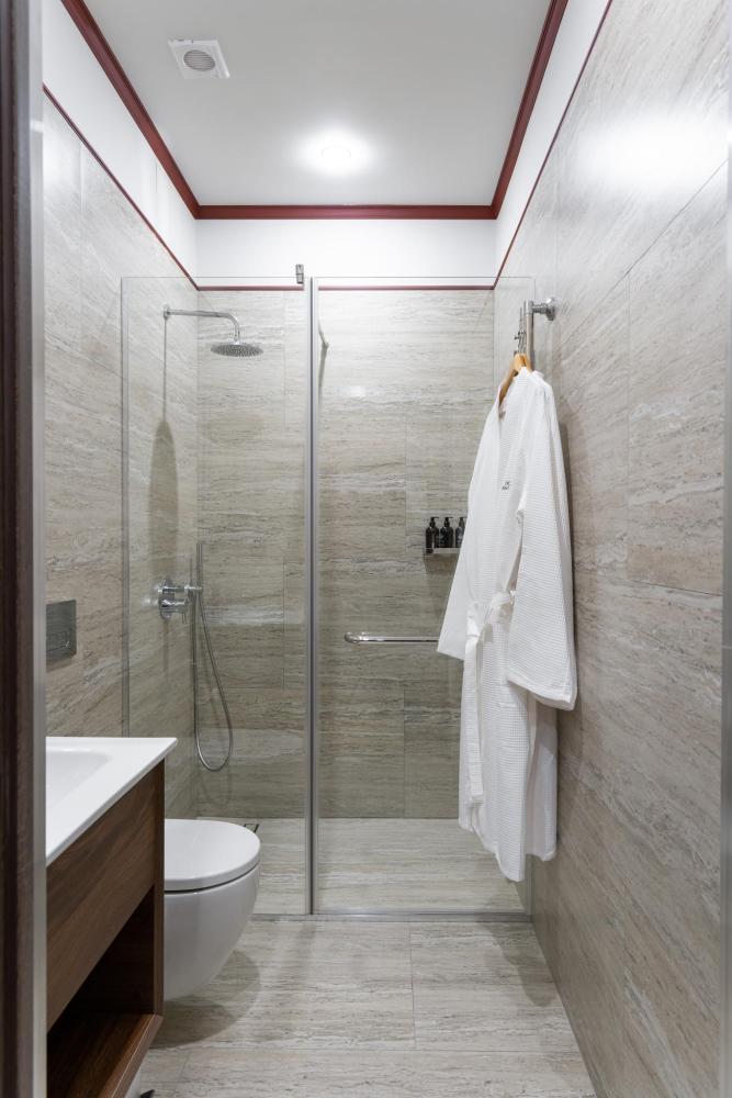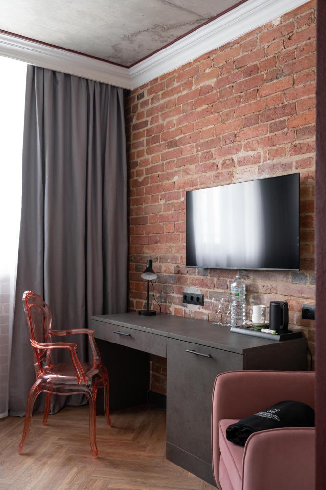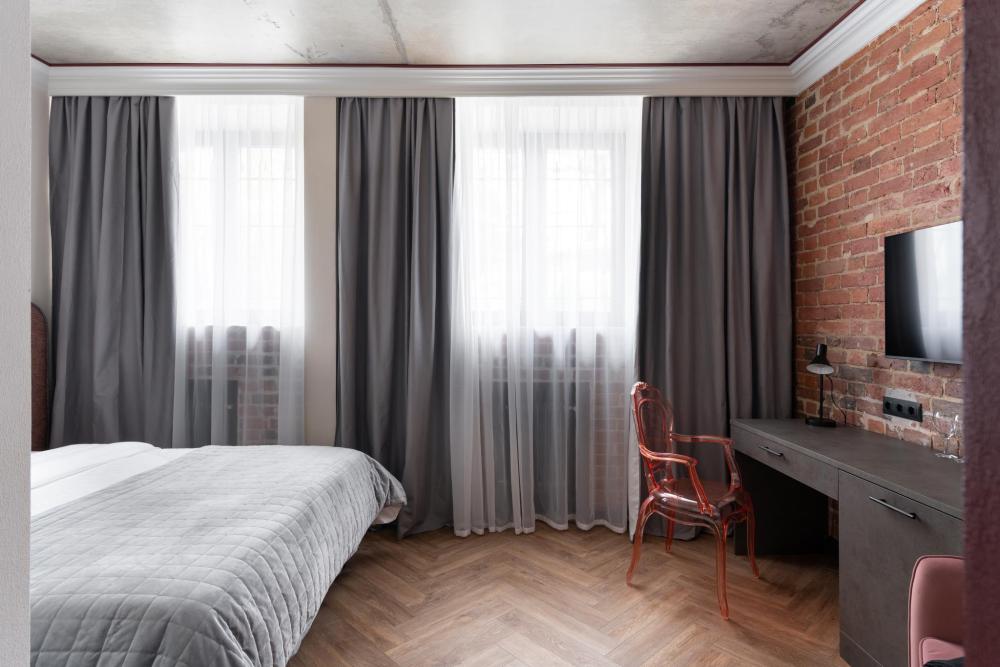 Уютный и комфортный, улучшенный номер площадью 33 кв.м., где есть все необходимое, чтобы гости чувствовали себя как дома. Высокоскоростной Wi-Fi, чайная станция, сейф, косметический набор, фен, тапочки, халат, утюг и гладильная доска (по запросу). В номере двуспальная кровать с ортопедическим матрасом размером 180*200