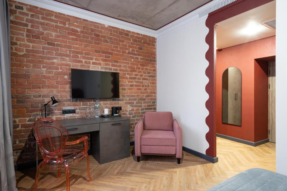 Просторный светлый двухкомнатный номер с видом на Спасо-Андроников монастырь. Площадь 45 м2, вместимостью до 5 человек. В номере отдельная спальня с большой двуспальной кроватью и ортопедическим матрасом, рабочая зона, собственная гардеробная, диван (спальное место 140*200), стиральная машина, выделенная кухонная зона, кофемашина, чайный набор, посудомоечная машина, индукционная плита, электрический чайник, комплект посуды, столовые приборы, кондиционер, телевизор ЖК, бесплатный Wi-Fi, тапочки, фен, косметические принадлежности, по запросу предоставляется дополнительное спальное место для ребенка.