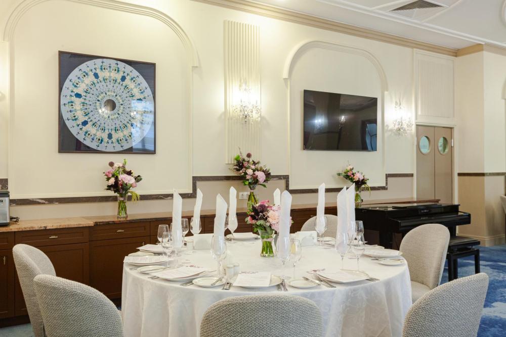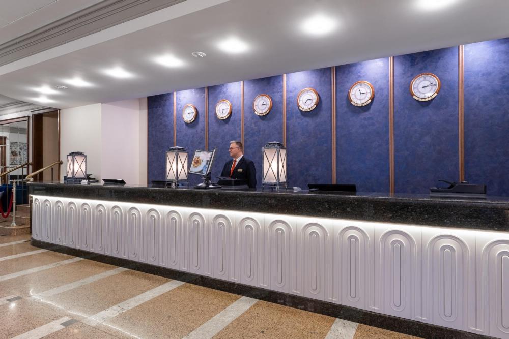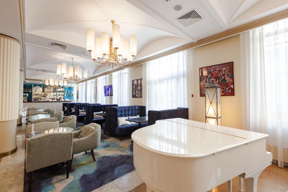 Спальня: двуспальная кровать king-size с ортопедическим матрасом, шкаф для одежды, подставка для чемодана, журнальный столик, кресло, рабочий стол, сейф, мини-бар, телефон, телевизор (общероссийские, спутниковые каналы), Wi-Fi, система кондиционирования. В ванной комнате: полотенцесушитель, фен, косметическое зеркало, набор косметики, тапочки и халат. Дневной и вечерний сервис в Клубной гостиной помимо завтрака в течение дня предлагает напитки, чай, кофе, свежую выпечку, фрукты и легкие закуски.