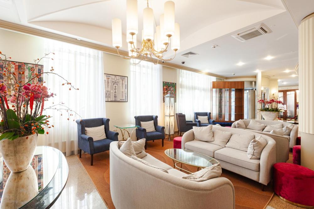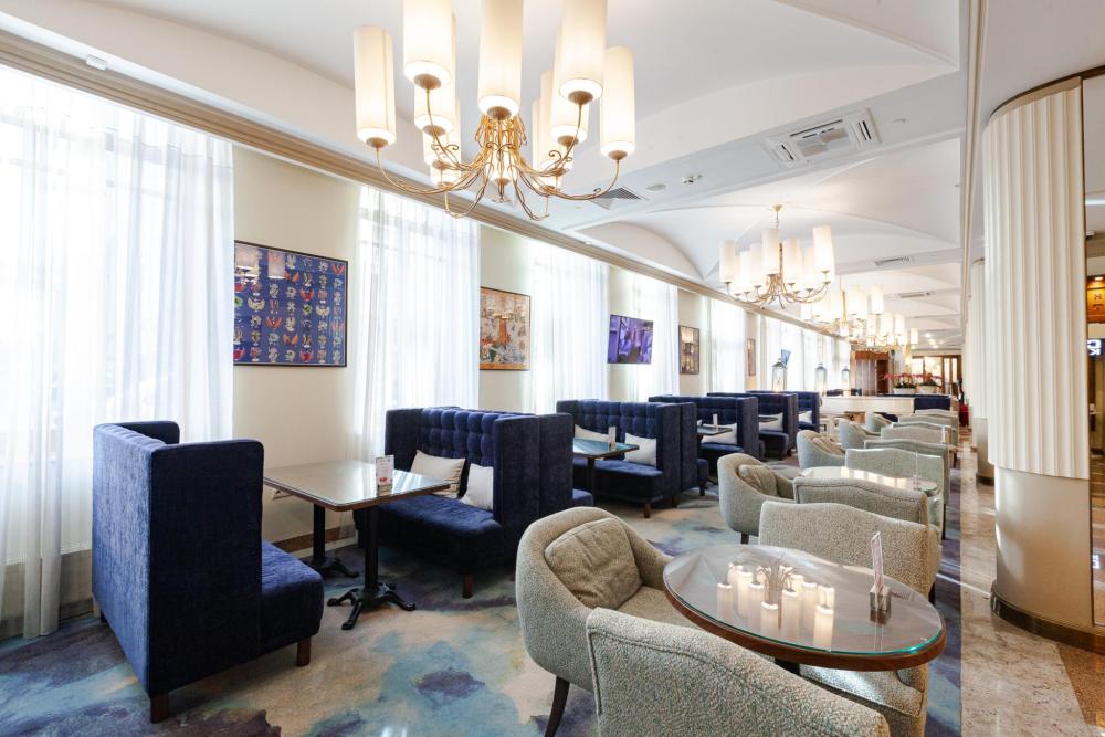 Спальная и гостиная комнаты: двуспальная кровать king-size с ортопедическим матрасом, шкаф для одежды, подставка для чемодана, журнальный столик, раскладной диван, кресло, рабочий стол, сейф, мини-бар, телефон, два телевизора (общероссийские, спутниковые каналы), Wi-Fi, система кондиционирования. В ванной комнате: полотенцесушитель, фен, косметическое зеркало, набор косметики, тапочки и халат. Дневной и вечерний сервис в Клубной гостиной помимо завтрака в течение дня предлагает напитки, чай, кофе, свежую выпечку, фрукты и легкие закуски.