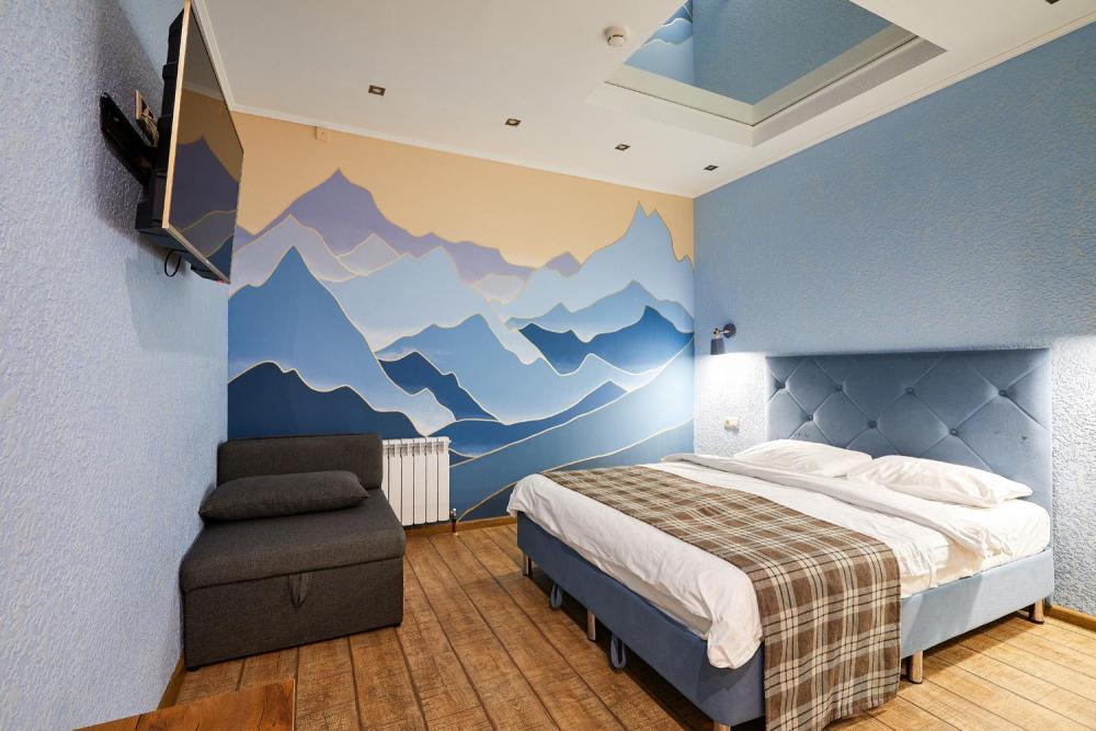 Трехместный номер с двуспальной кроватью и пуфом-трансформером. Номер оснащен телевизором, местом для хранения одежды, кондиционером, холодильником, сейфом, ванной комнатой, предоставляются туалетно-косметические принадлежности, фен, тапочки.