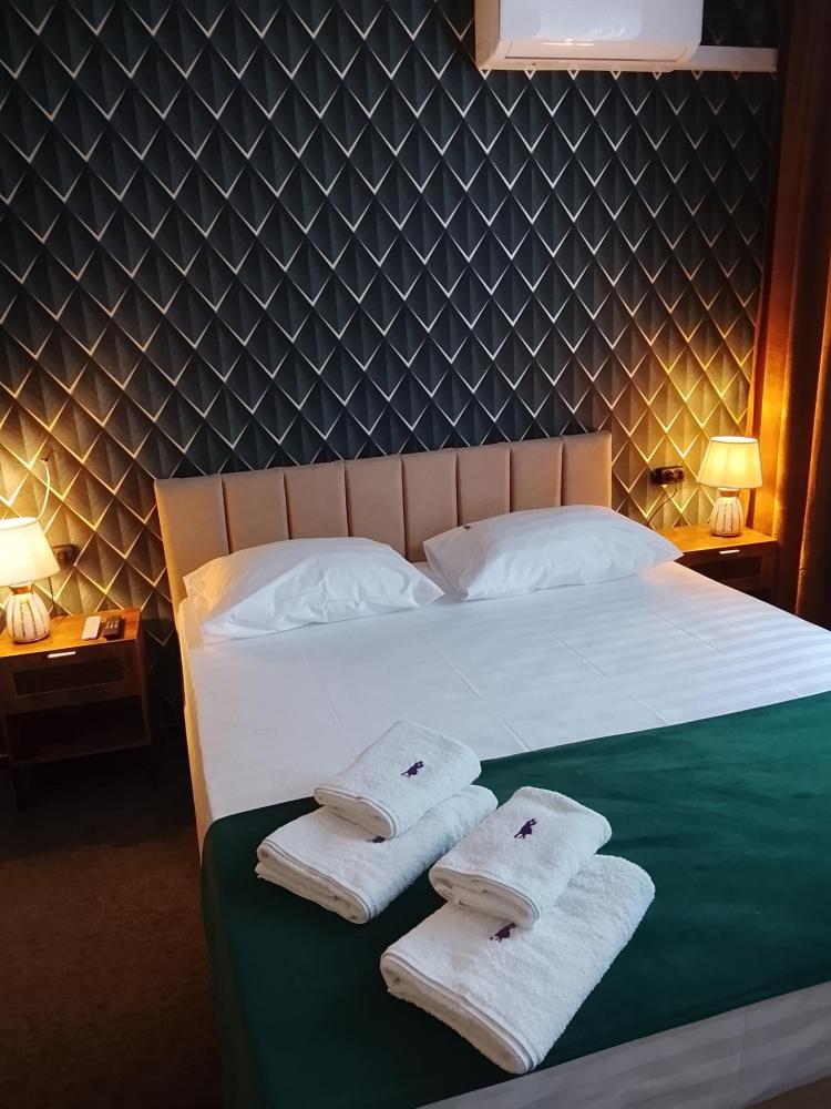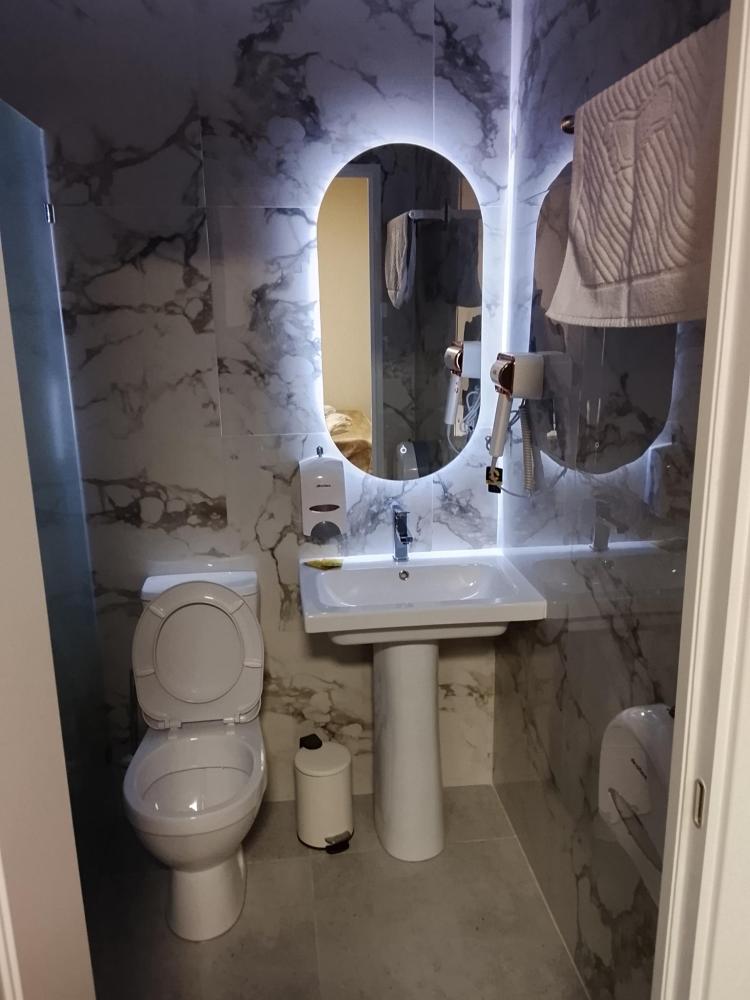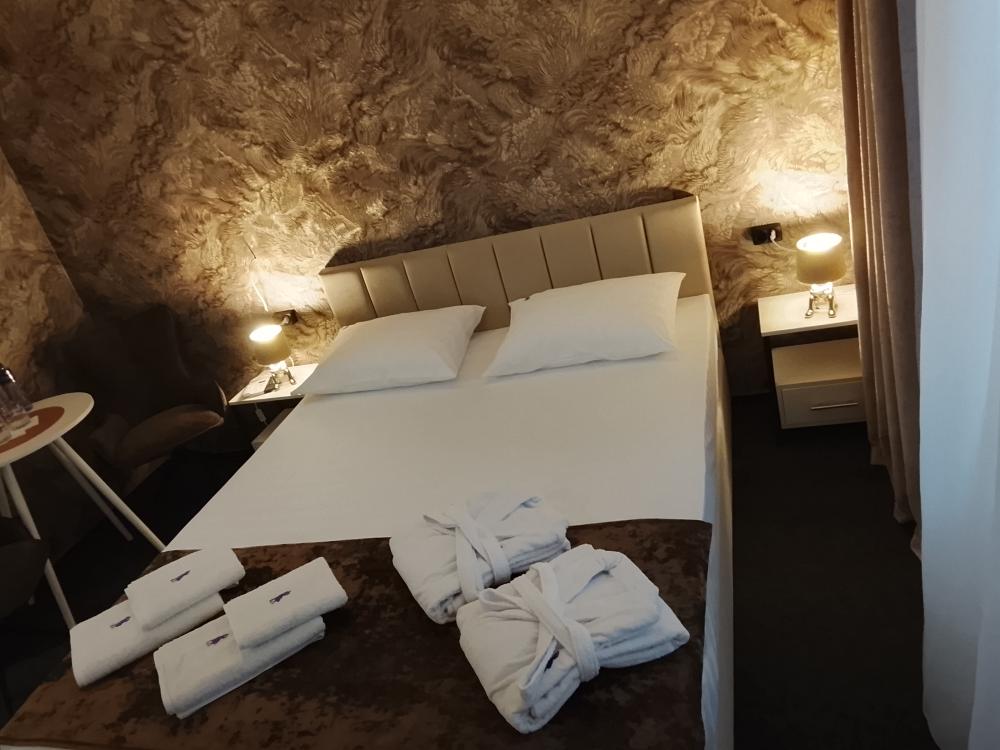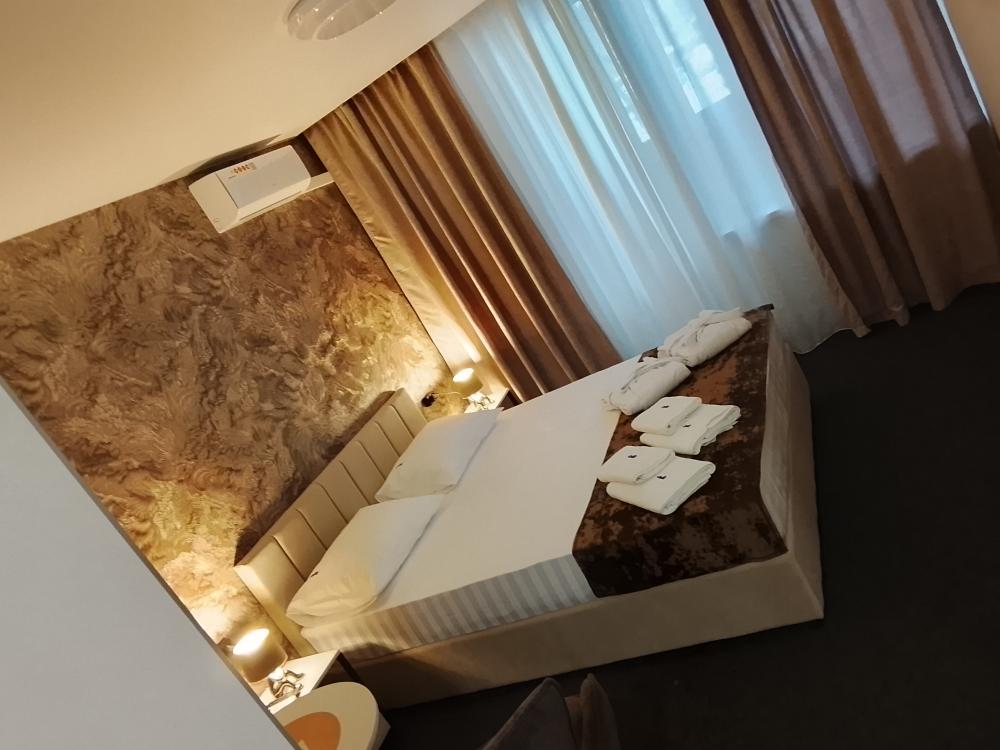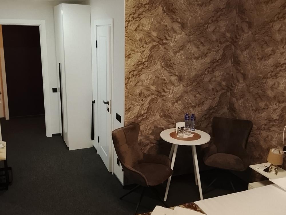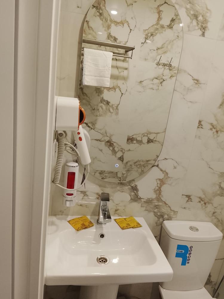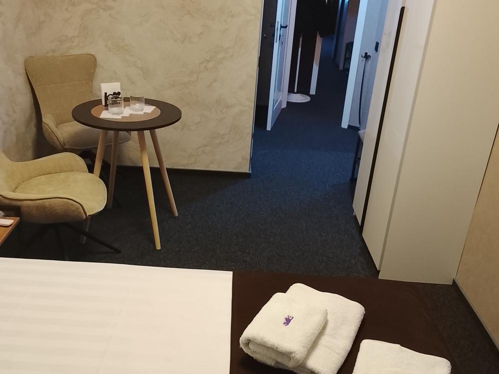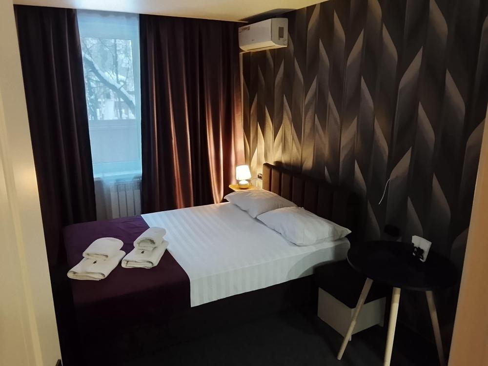 В номере есть большая плазменная панель, сплит-система, большая двуспальная кровать, прикроватные тумбочки, зона отдыха из двух стульев и стола, санузел с душевой кабиной, комплект полотенец, туалетные и ванные принадлежности, а также фен.