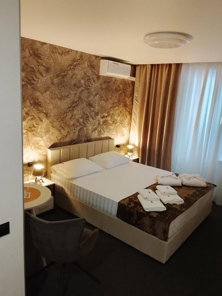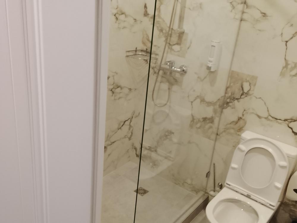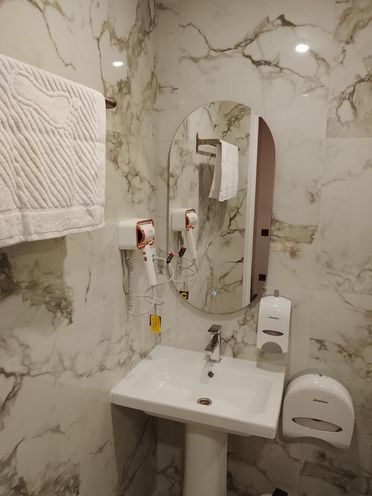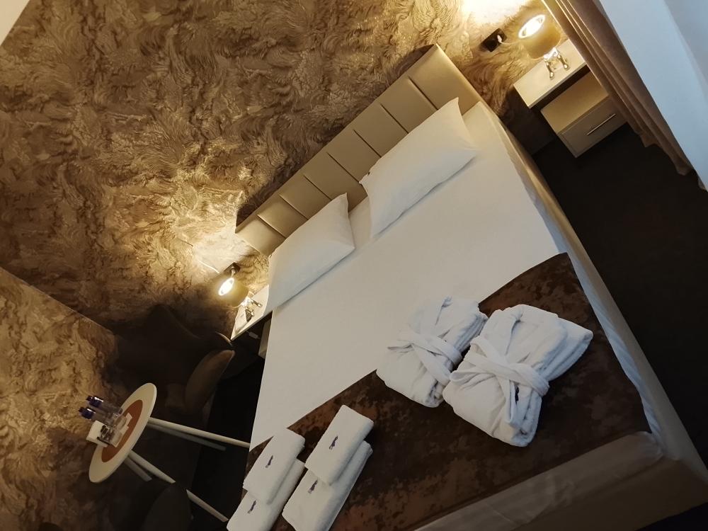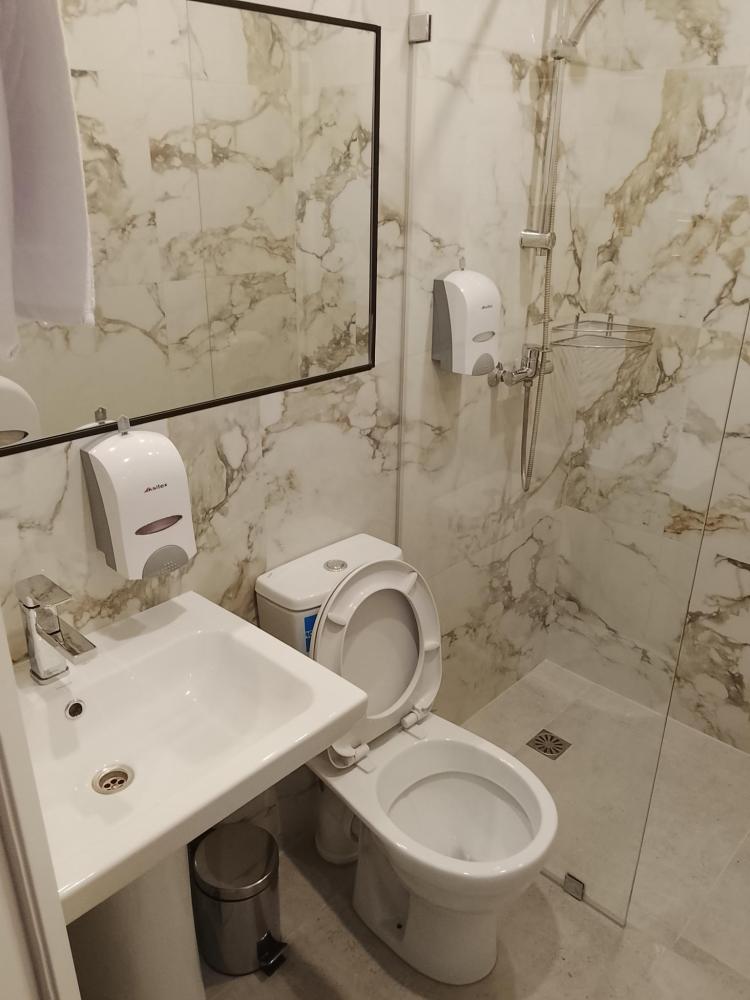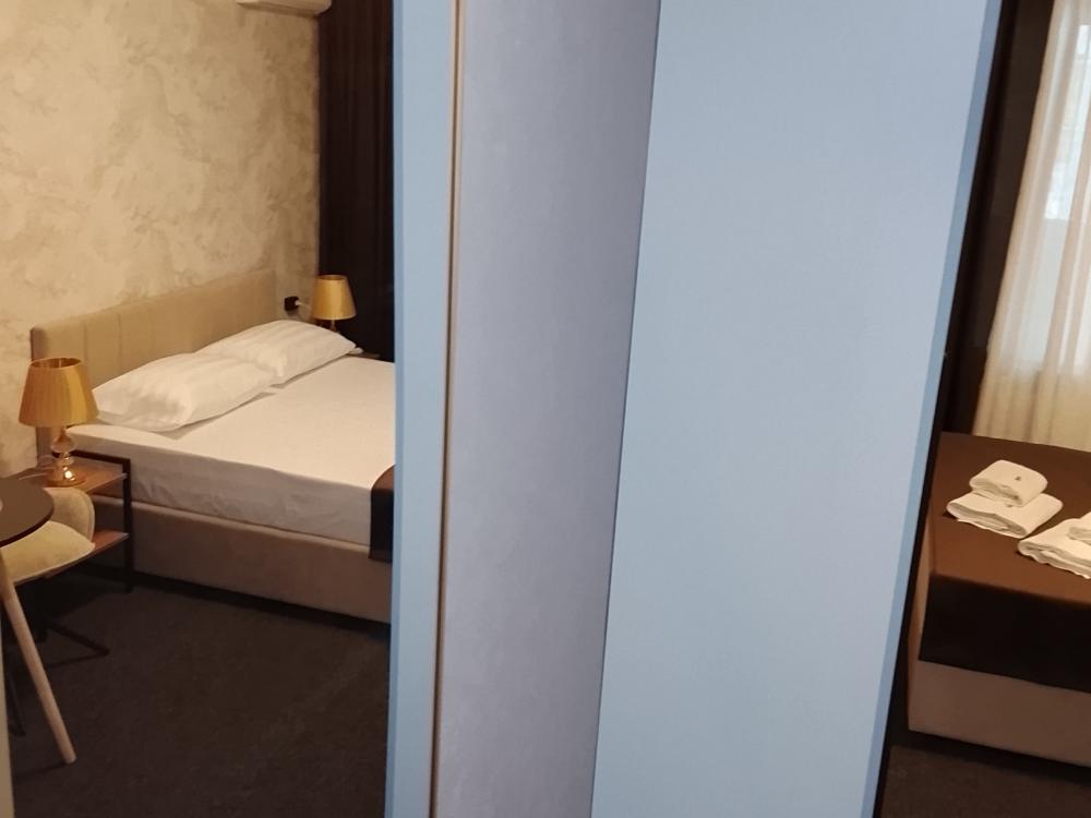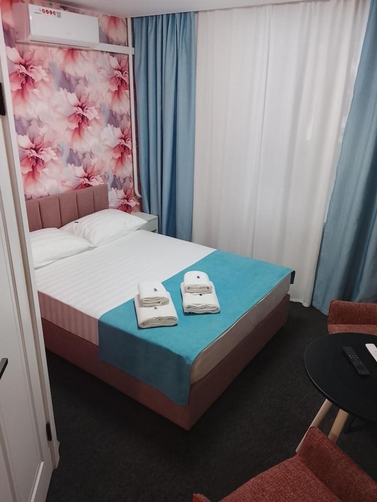 В номере есть большая плазменная панель, сплит-система, большая двуспальная кровать, прикроватные тумбочки, зона отдыха из двух стульев и стола, санузел с душевой кабиной, комплект полотенец, туалетные и ванные принадлежности, а также фен.